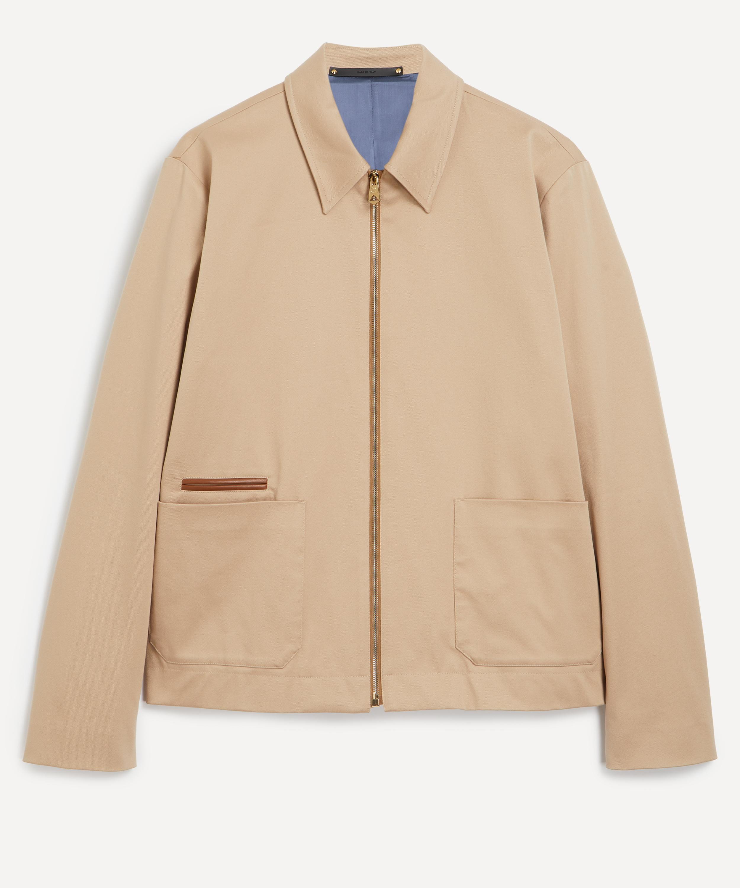 Tan Stretch Cotton-Twill Short Zip Jacket