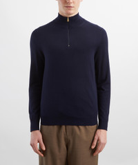 DETAILS Merino wool half-zip Regular fit Long sleeves Half-zip funnel neck Ribbed collar, cuffs and hem Tonal signature logo embroidery Internal 'Signature Stripe' trim SIZE & FIT Model is 186cm/6'1"; Chest: 92cm; Waist: 71cm and wears a size M COMPOSITION & CARE 100% Merino wool Hand wash