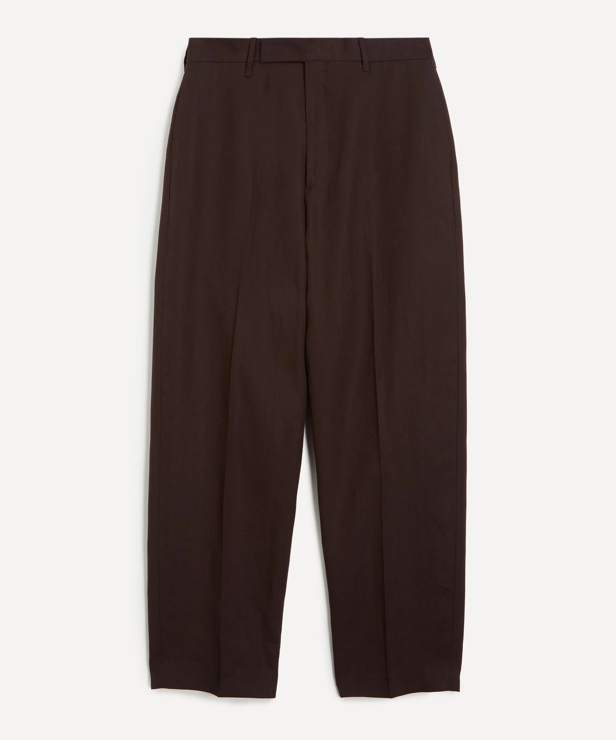 DETAILS Linen trousers Relaxed fit Tapered leg Long-length Concealed closure, zip fly Belt loops Pressed creases Side seam pockets Rear welt pockets Made in Portugal SIZE & FIT Model is 186cm/ 6'1": Chest: 92cm; Waist: 80cm and wears a size 32 COMPOSITION & CARE 100% Linen Machine washable