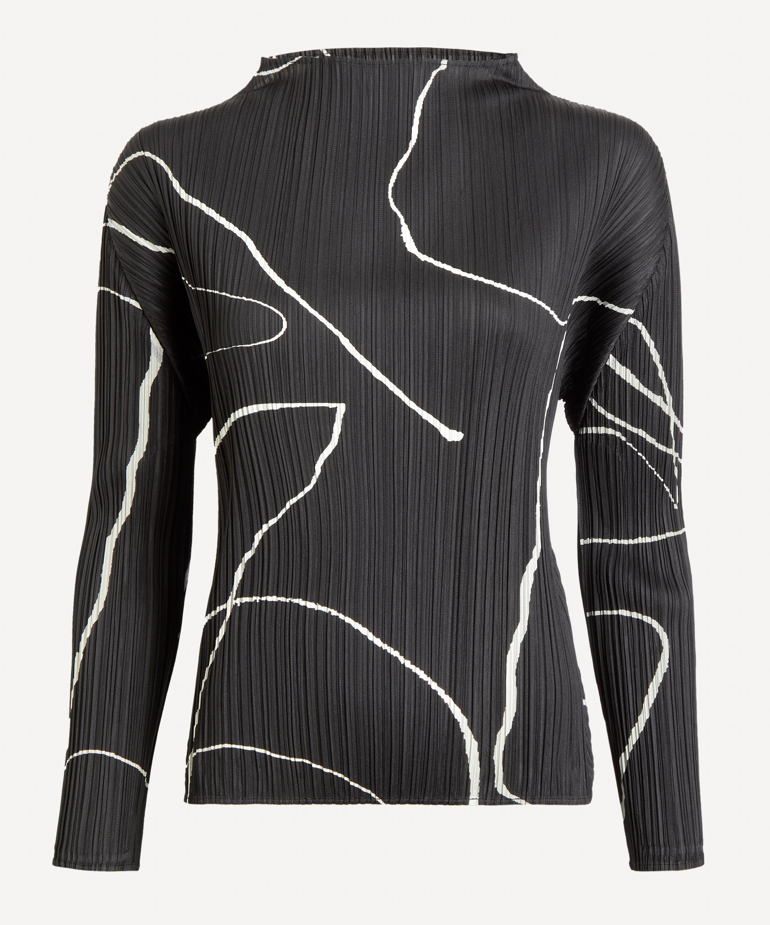 DETAILS Pleated top PAUSE collection Long-sleeved Line print Wide mock neckline SIZE & FIT Model is 176cm/5'9.5"; Chest: 81cm; Waist: 62.5cm; Hip: 89cm and wears a size 3 COMPOSITION & CARE 100% Polyester Machine wash cold, lay flat to dry