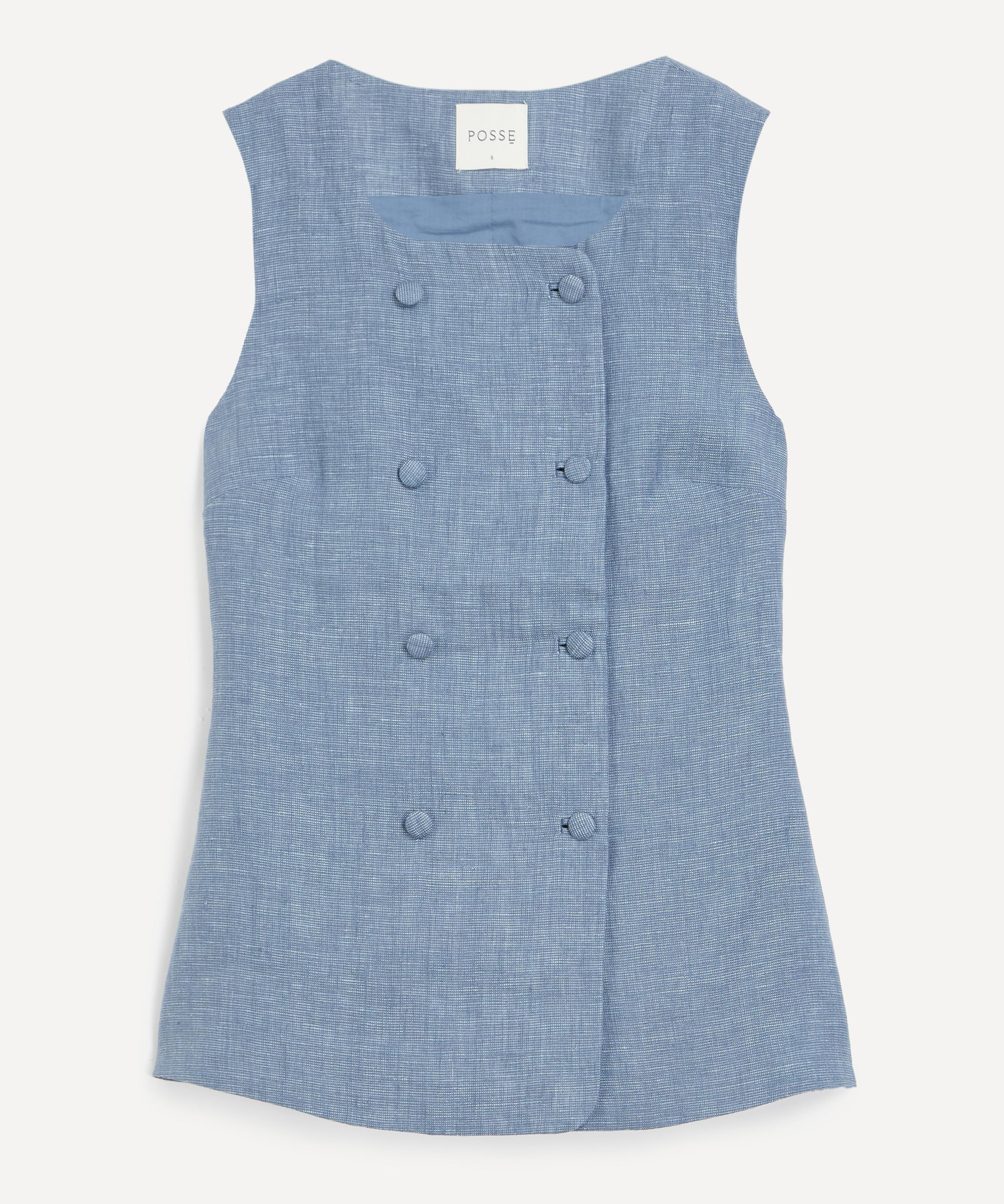 Thea double-breasted linen vest Blue