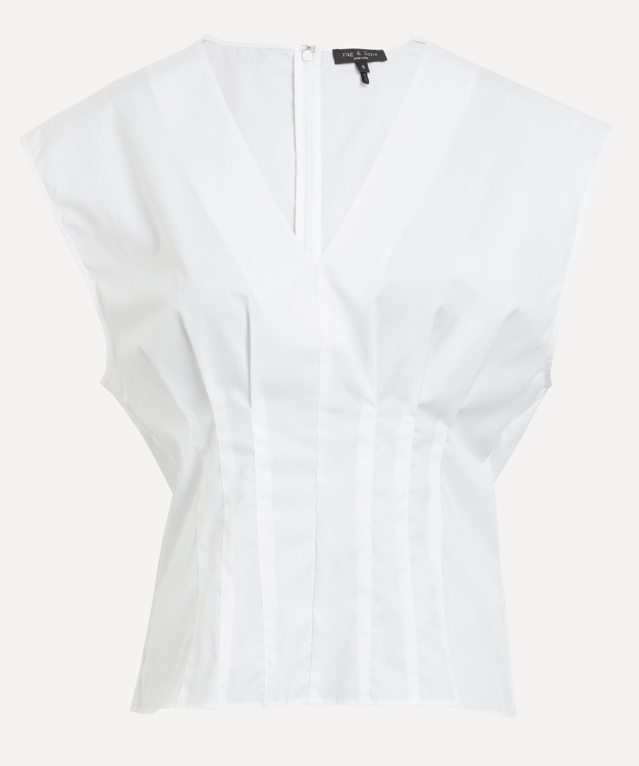 DETAILS Cotton poplin top Slim fit A-line silhouette V-neckline Cinched, pleated waist Model is 175cm/5'9"; Chest: 77cm; Waist: 57cm; Hip: 87cm and wears a size 8 COMPOSITION & CARE 100% Cotton Machine washable