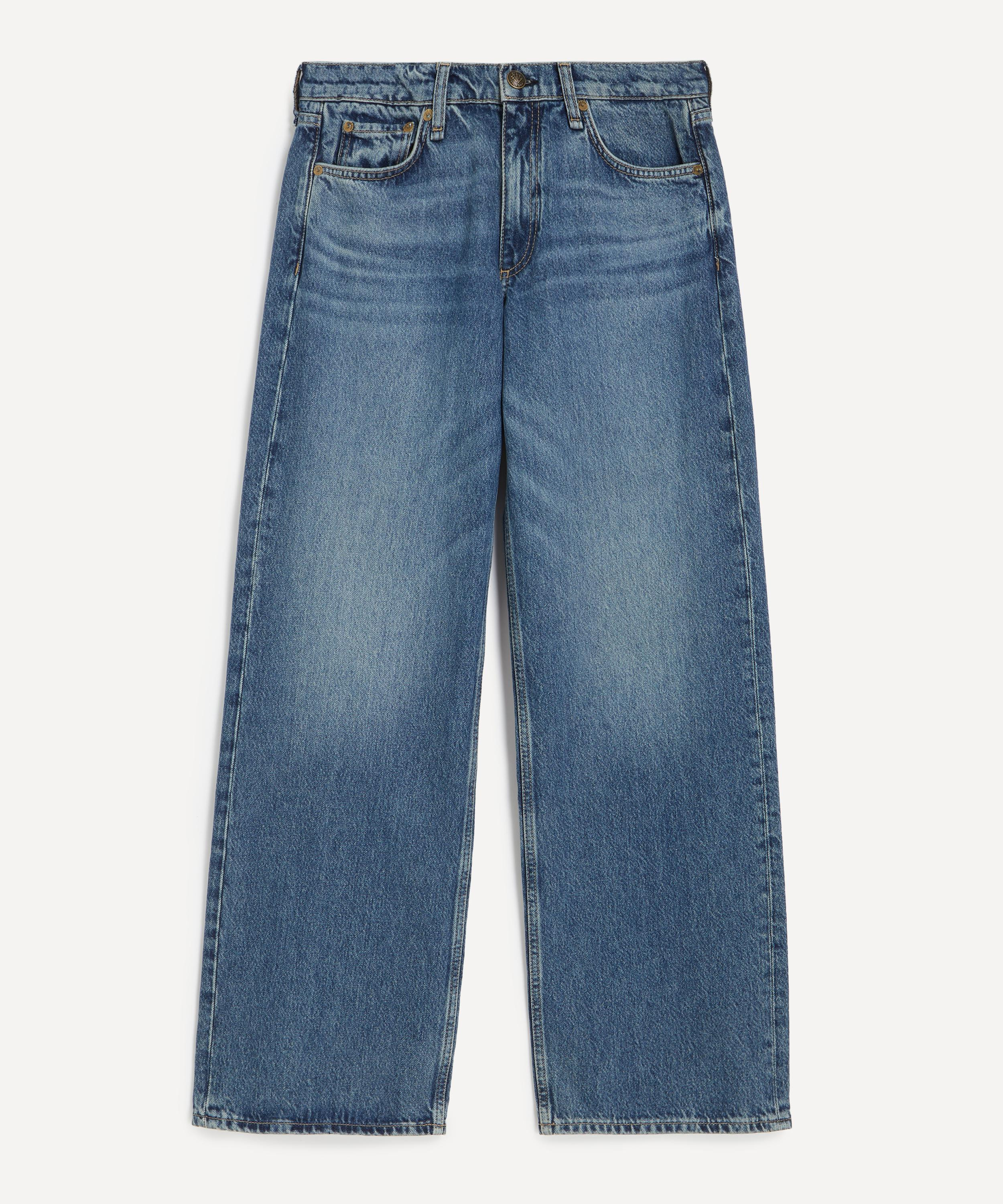 DETAILS Saige jeans Lightweight Rigid denim Low-rise Relaxed fit Straight leg Full length Front rise: 9.25” Inseam: 32” Leg opening: 20” Designer wash: Echo Zip fly with a button closure Signature dagger shank button closure Washer rivets 5-pocket construction Branded jacron patch Light fading and whiskering throughout SIZE & FIT Model is 175cm/5'9"; Chest: 76cm; Waist: 58cm; Hip: 90cm and wears a size 27 COMPOSITION & CARE 100% Cotton Machine wash cold inside out with similar colours. Gentle cycle, do not use bleach. Hang to dry, low iron if need