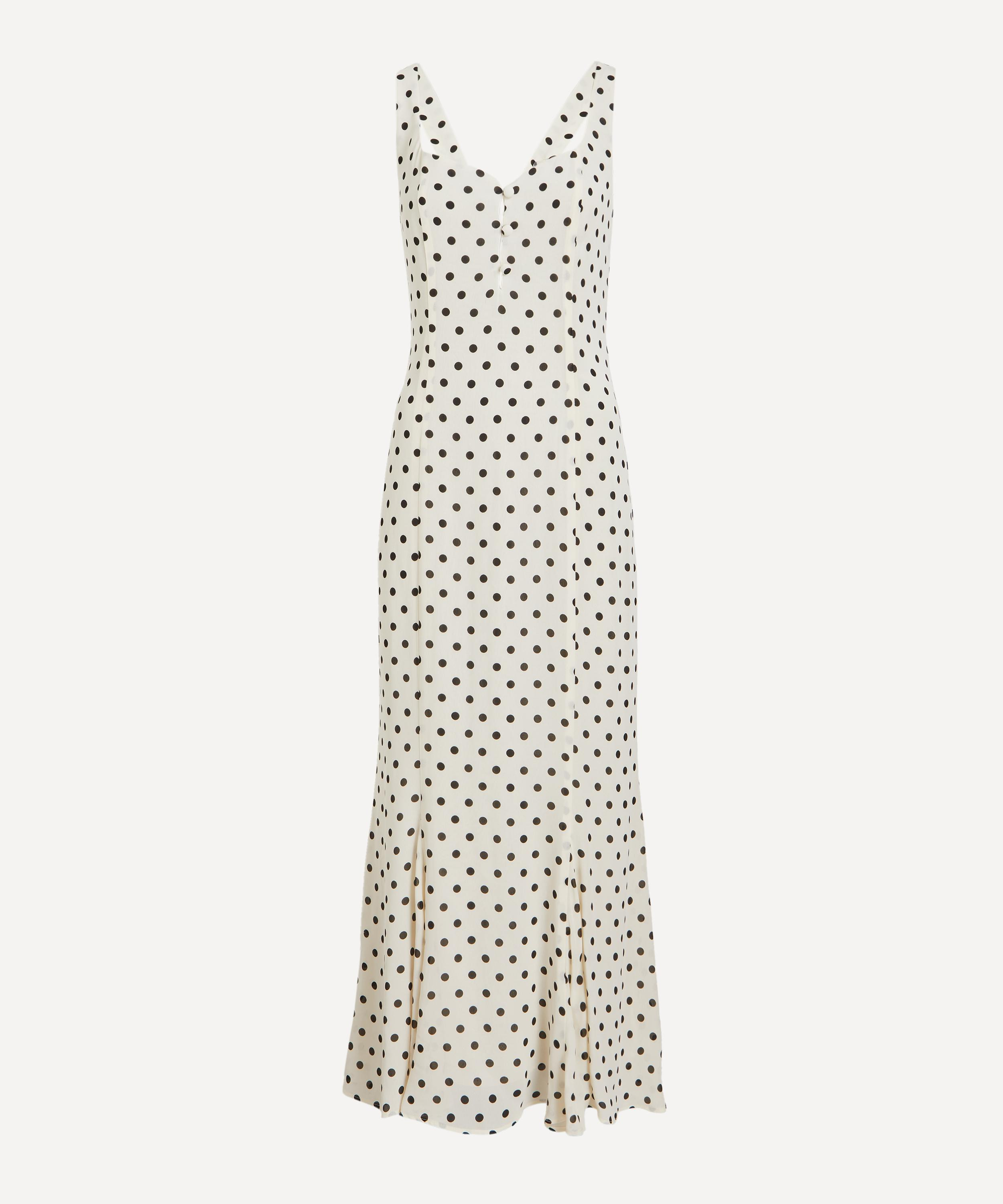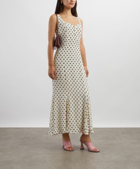 DETAILS Georgette maxi dress Curved neckline Fitted bodice Back smocking Mermaid-shape skirt Polka-dot print SIZE & FIT Model is 175cm/5'9"; Chest: 81cm; Waist: 63.5cm; Hip: 92.5cm and wears a size 8 COMPOSITION & CARE 100% Viscose Dry clean