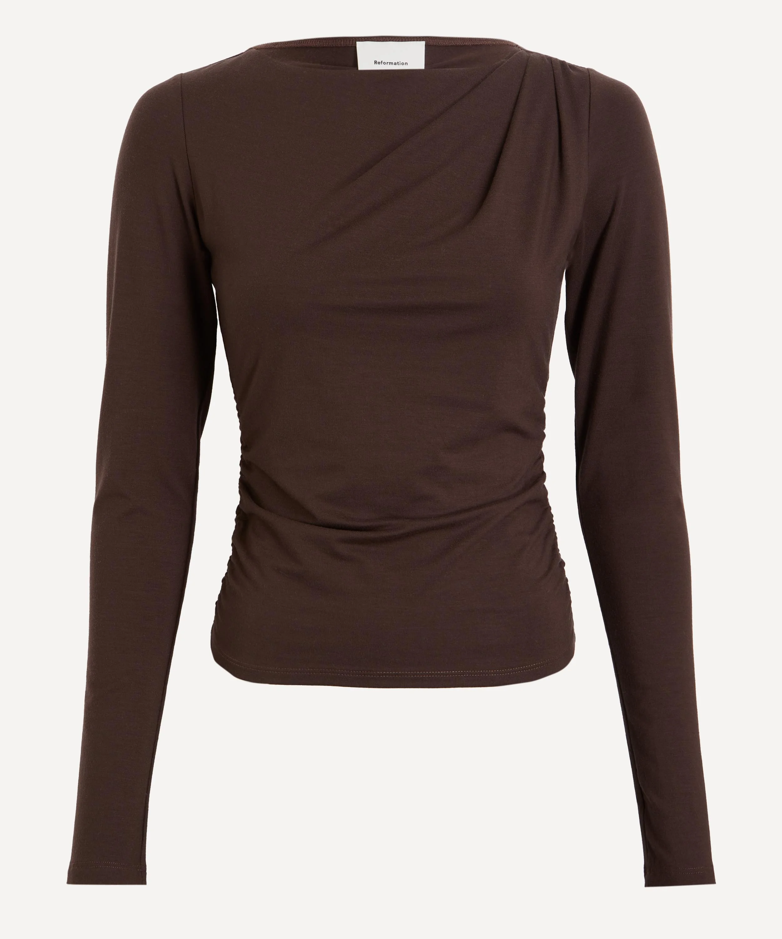 DETAILS Stretch jersey top Slim fit Long sleeves Boat neckline Ruched details SIZE & FIT Model is 178cm/5'10"; Chest: 78cm; Waist: 60cm; Hip: 90cm and wears a size S COMPOSITION & CARE 88% TENCEL ® lyocell; 12% Spandex Dry clean