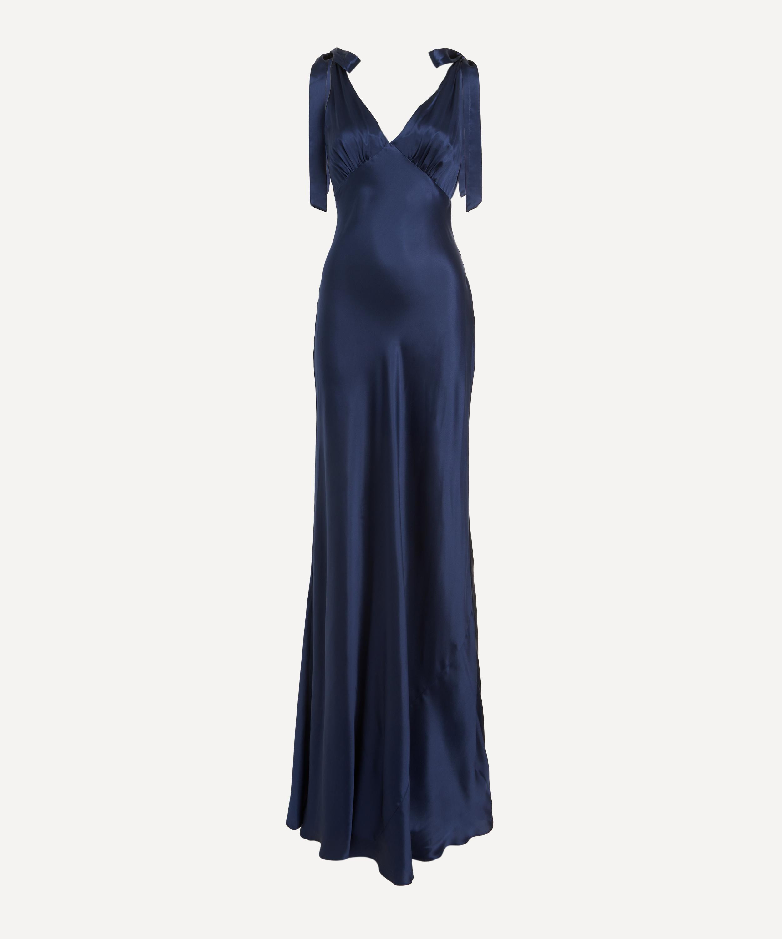 DETAILS Silk charmeuse dress Maxi length Fitted bodice Tie straps V-neckline Empire waist Lined SIZE & FIT Model is 175cm/5'9"; Chest: 76cm; Waist: 58cm; Hip: 90cm and wears a size S COMPOSITION & CARE 100% Silk Dry clean