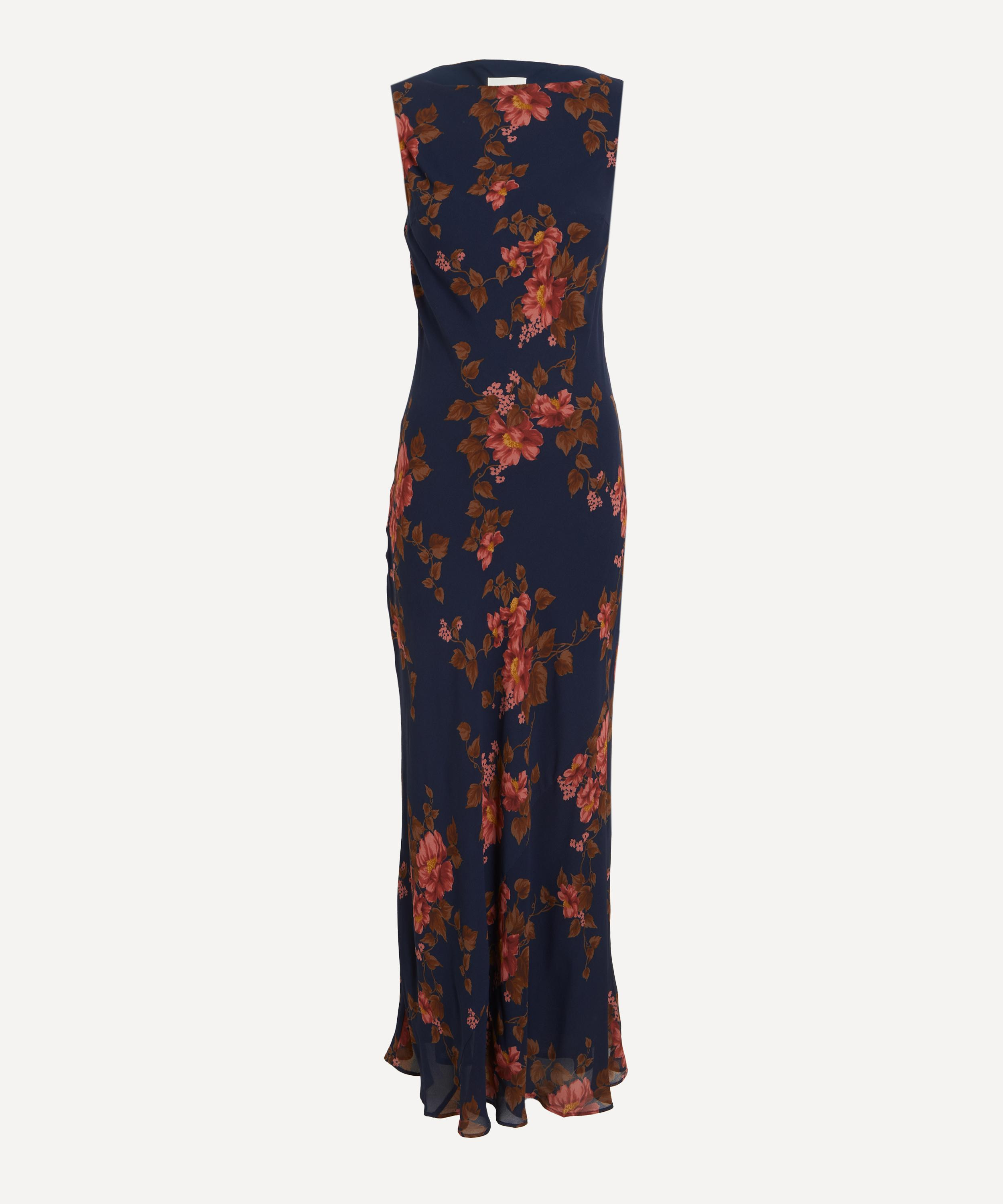 DETAILS Georgette maxi dress Slim fit Boat neckline Sleeveless SIZE & FIT Model is 175cm/5'9"; Chest 75cm; Waist: 23.5cm; Hip: 33.5cm and wears a size S COMPOSITION & CARE 100% Viscose Dry clean