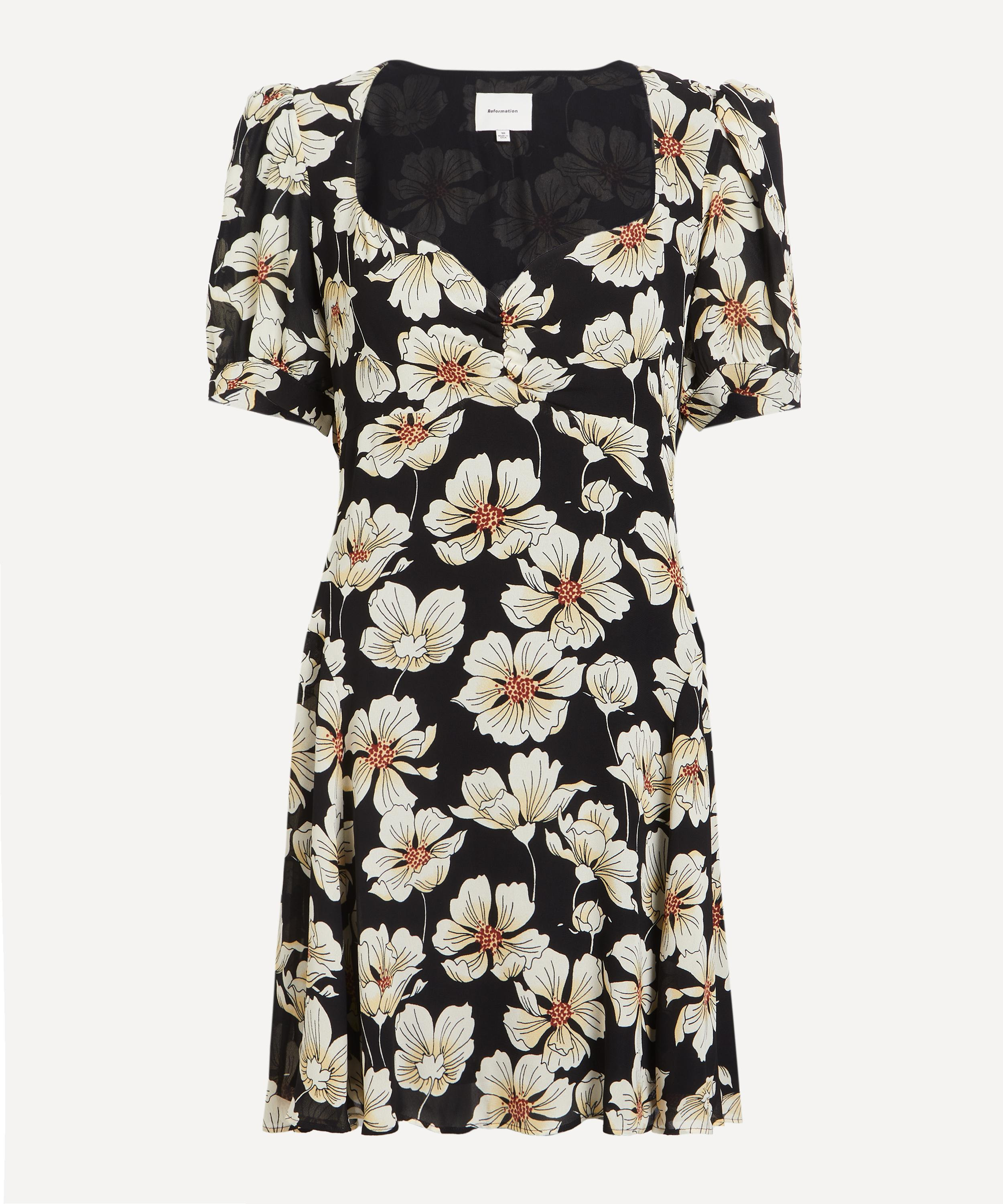 DETAILS Georgette mini dress Curved neckline Short sleeves Fitted bodice A-line skirt SIZE & FIT Model is 175cm/5'9"; Chest: 81cm; Waist: 63.5cm; Hip: 92.5cm and wears a size 8 COMPOSITION & CARE 100% Viscose Dry clean