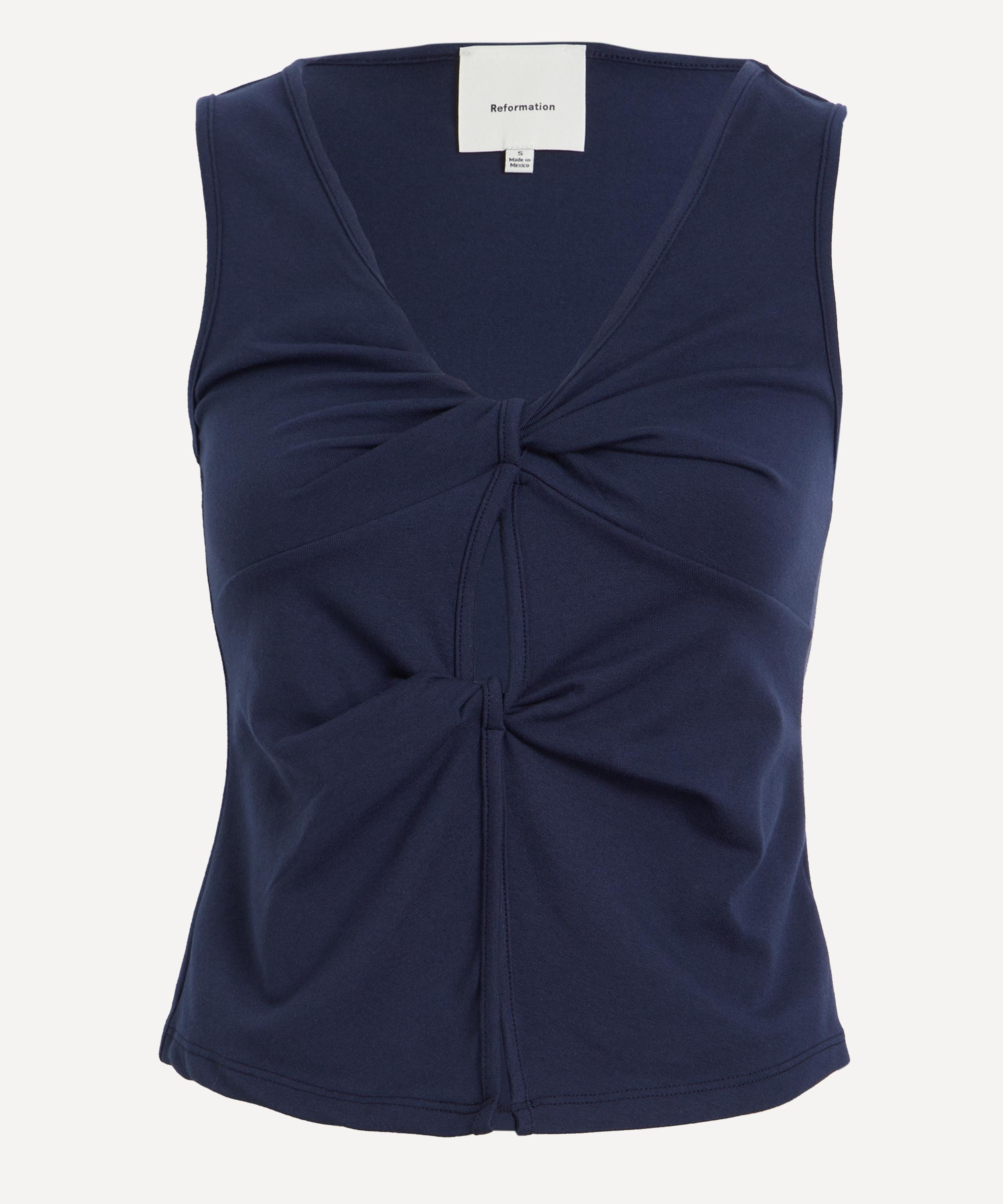 DETAILS Stretch jersey top Close fit Knotted detailing Open cut-out naval SIZE & FIT Model is 175cm/5'9"; Chest: 81cm; Waist: 63.5cm; Hip: 92.5cm and wears a size S COMPOSITION & CARE 88% Cotton; 12% Spandex Wash cold. Dry flat