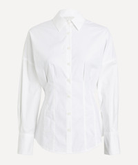 DETAILS Cotton shirt Dropped shoulders Long sleeves Buttoned cuffs Point collar Button fastening Fitted waist with darts Curved hem SIZE & FIT Model is 175cm/5'9"; Chest: 81cm; Waist: 63.5cm; Hip: 92.5cm and wears a size 8 COMPOSITION & CARE 98% Cotton; 2% Spandex Wash cold, dry flat