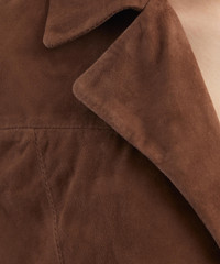 DETAILS Suede coat Regular fit Buttoned front closure Lapel collar V-neckline Long sleeves Side pockets Long-line silhouette Partially lined SIZE & FIT Model is 178cm/5'10"; Chest: 77cm; Waist: 65cm; Hip: 92cm and wears a size 8 COMPOSITION & CARE 100% Suede Contrast: 79% Cotton; 21% Polyamide Specialist leather clean only