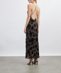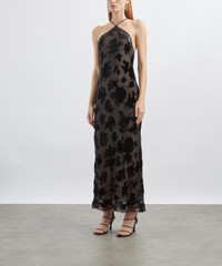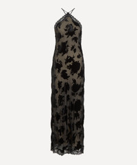 DETAILS Silk-velvet devore slip dress Fits true to size Midi length Halter neckline Adjustable straps Low, open back Bias-cut Lace trims SIZE & FIT Model is 175cm/5'9"; Chest: 76cm; Waist: 58cm; Hip: 90cm and wears a size 8 COMPOSITION & CARE Main: 59% Viscose; 41% Silk Lace: 100% Polyamide Lining: 100% Polyester Dry clean