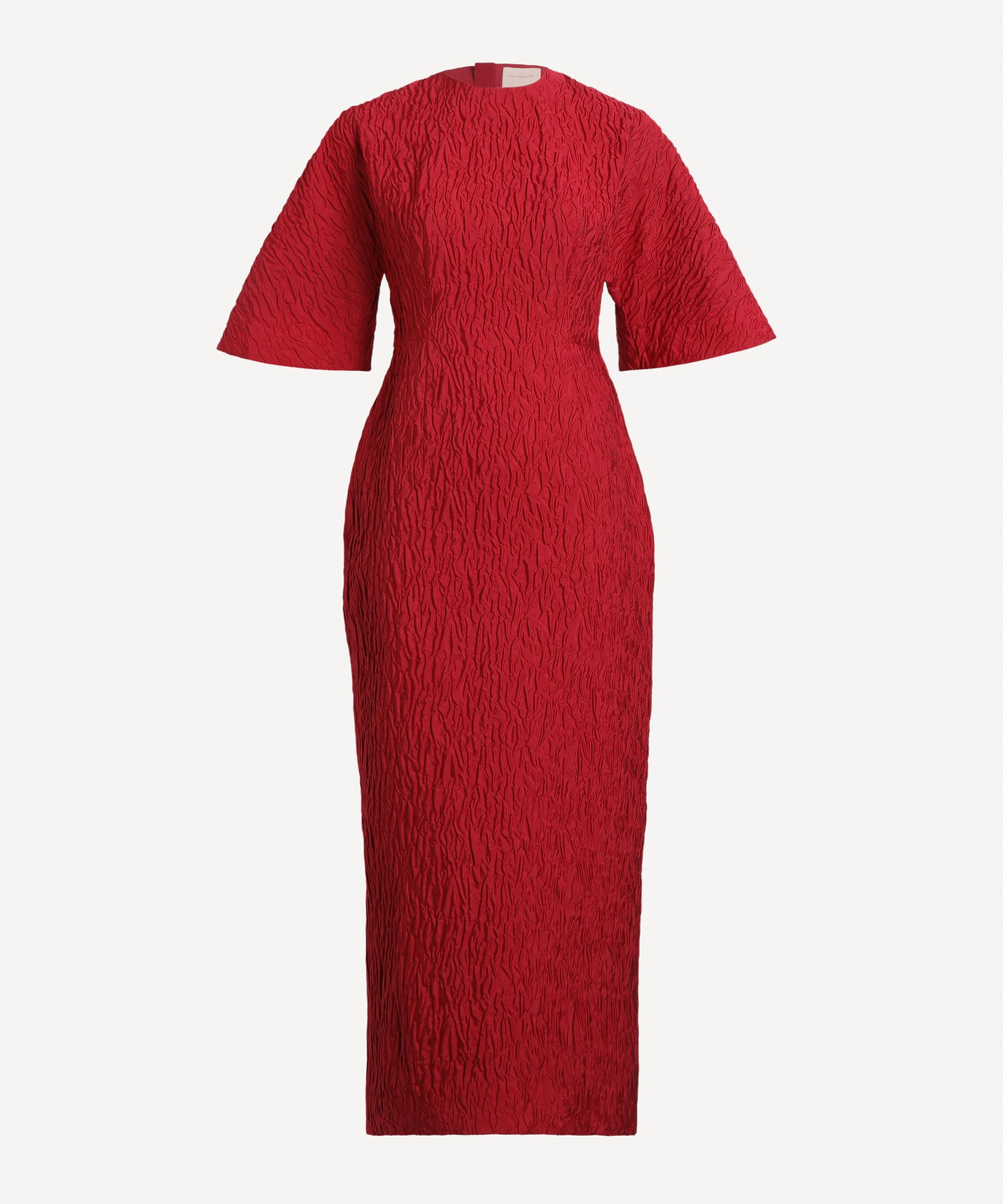 DETAILS Falah gown Textured cloque Slim-fit Voluminous short sleeves Midi hem Concealed zip fastening at the back SIZE & FIT Model is 188cm/6'2"; Chest: 91cm; Waist: 79cm and wears a size 8 COMPOSITION & CARE 76% Polyester; 24% Polyamide Specialist dry clean