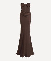 DETAILS Satin maxi dress Tight fit Fitted bodice Fluid skirt Floor-length hem Concealed zipper SIZE & FIT Model is 178cm/5'10"; Chest: 77cm; Waist: 65cm; Hip: 92cm and wears a size 8 COMPOSITION & CARE 100% Polyester Lining: 80% Polyamide; 20% Elastane Dry clean
