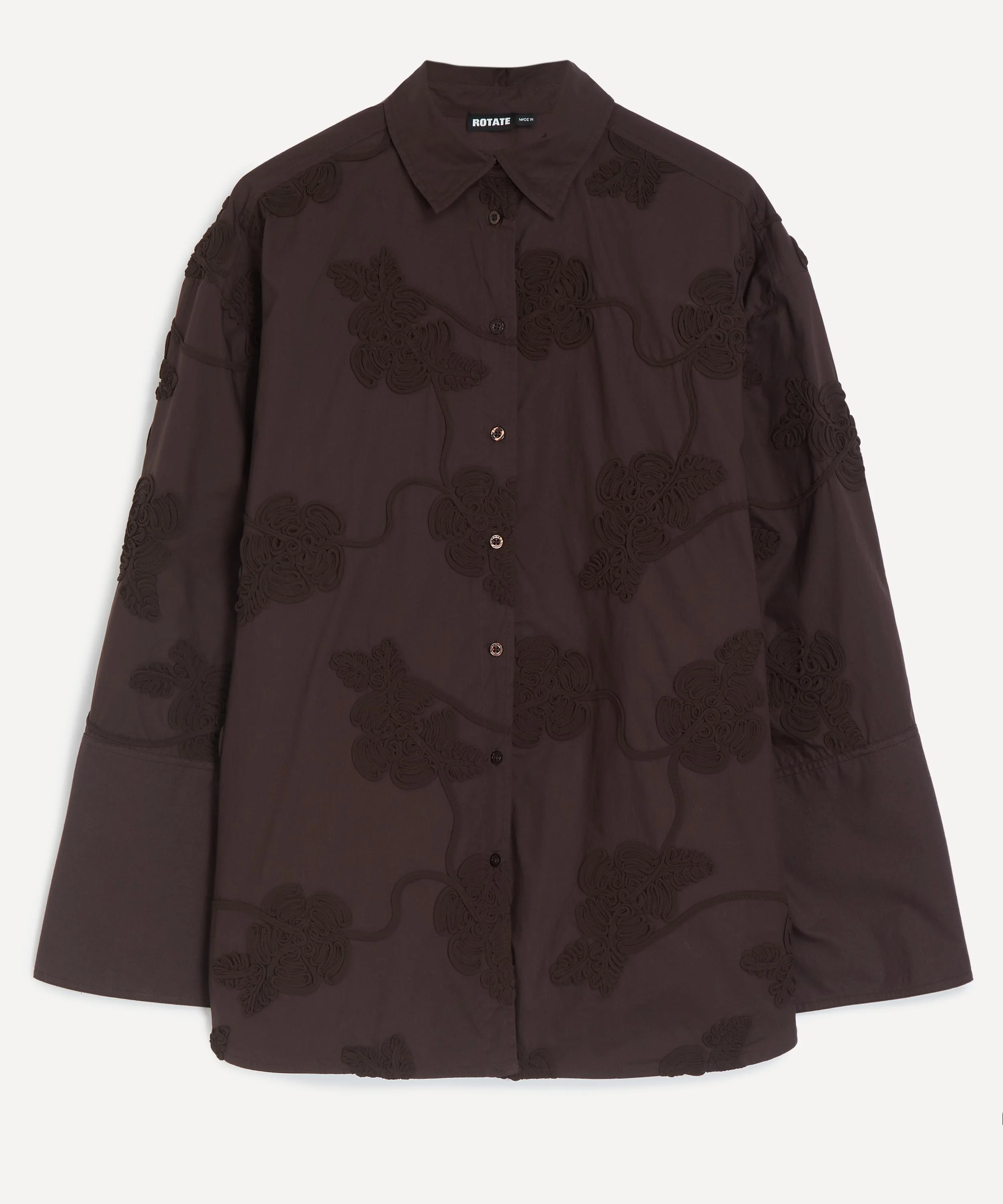 DETAILS Cotton shirt Floral applique detail Oversized fit Dropped shoulders Long, wide sleeves Buttoned cuffs Classic collar Front button fastening SIZE & FIT Model is 175cm/5'9"; Chest: 83cm; Waist: 27cm; Hip: 38.5cm and wears a size 8 COMPOSITION & CARE 100% Cotton Dry clean