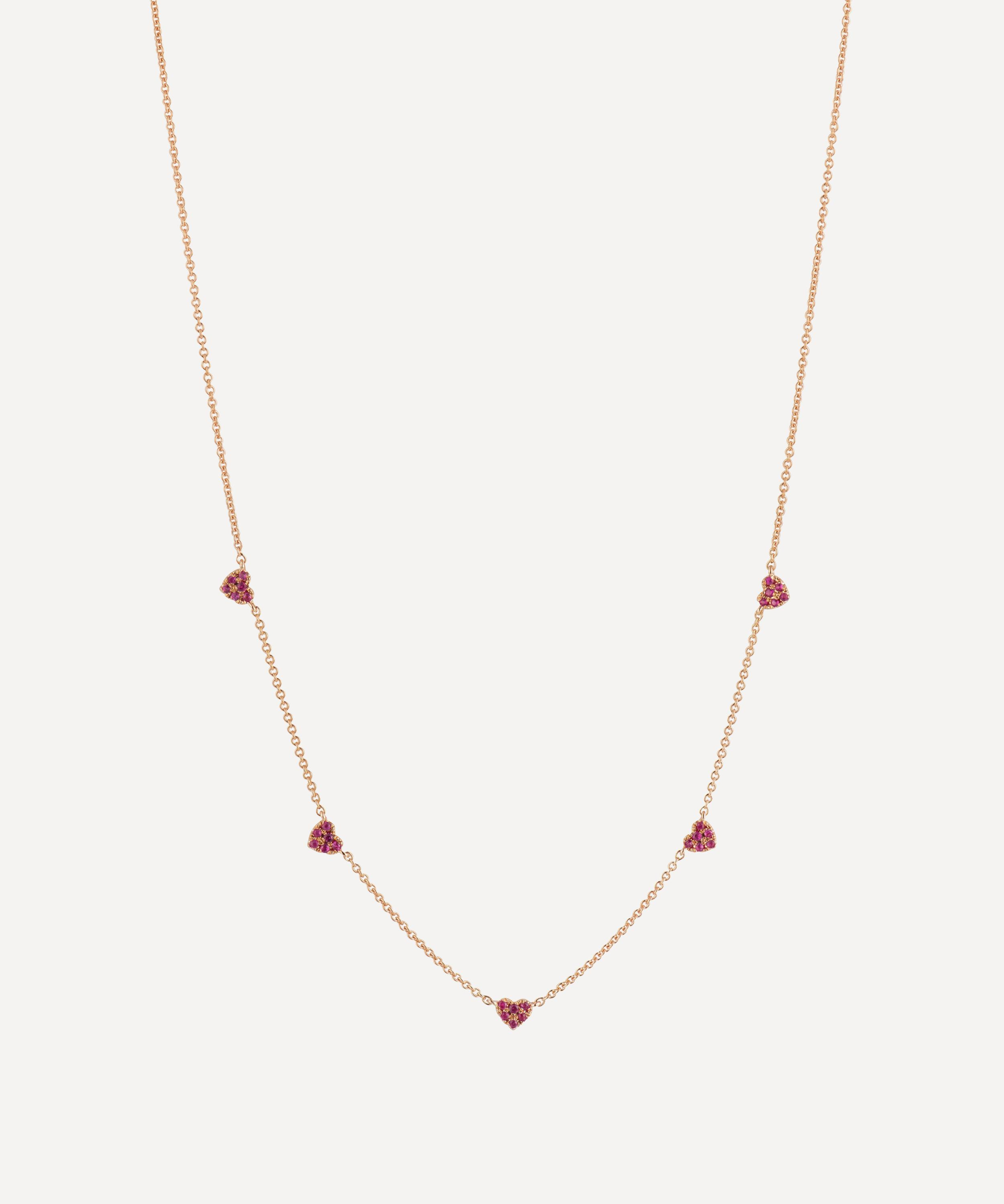 14ct Gold Many Mini Pink Sapphire Heart Station Necklace
