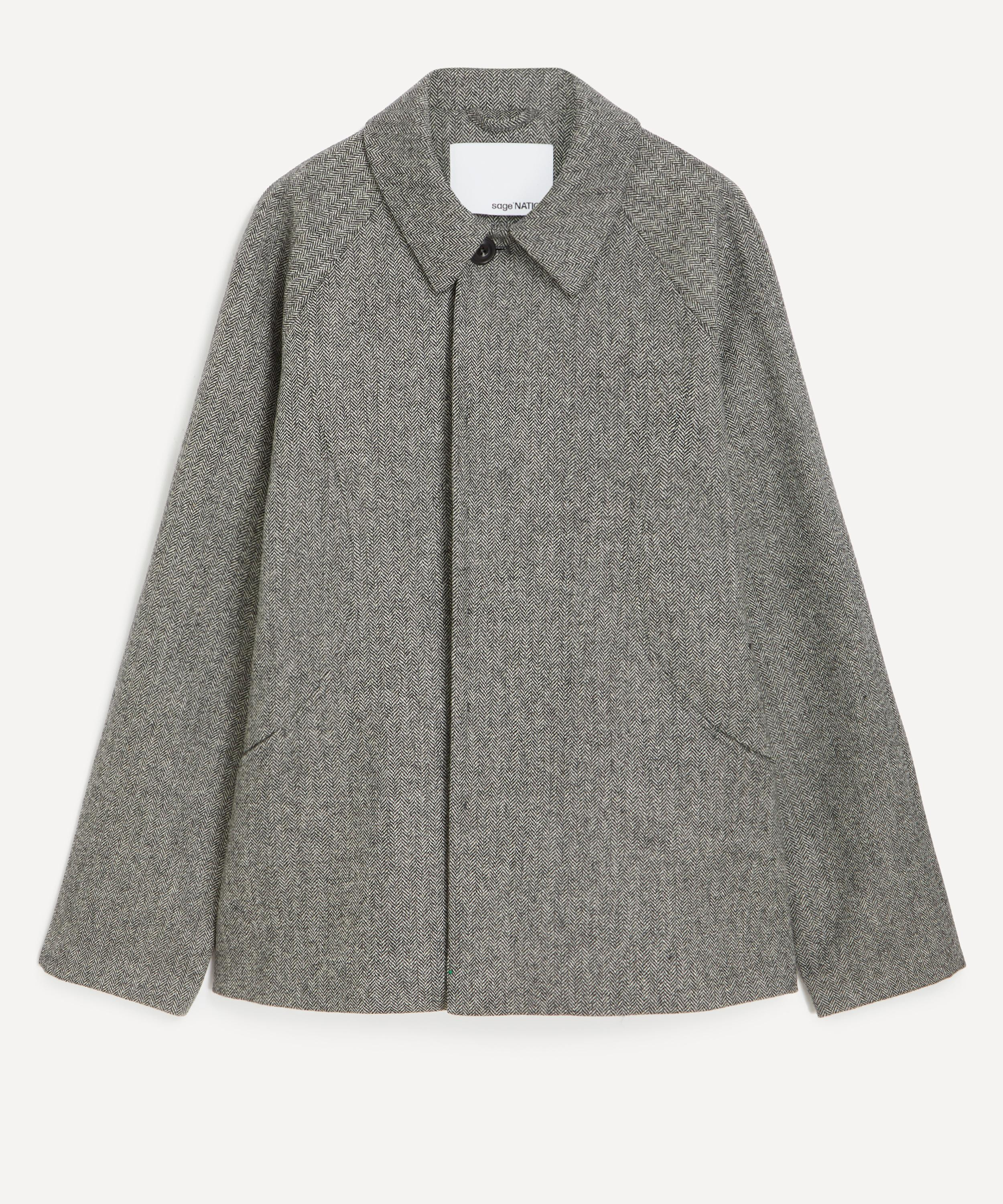 DETAILS Melton wool jacket Short length Relaxed fit Curved panelling Long raglan sleeves Detachable collar tab Concealed button placket Side entry pockets Made in England SIZE & FIT Model is 186cm/6'1"; Chest: 92cm; Waist: 71cm and wears a size M COMPOSITION & CARE 100% Wool Dry clean