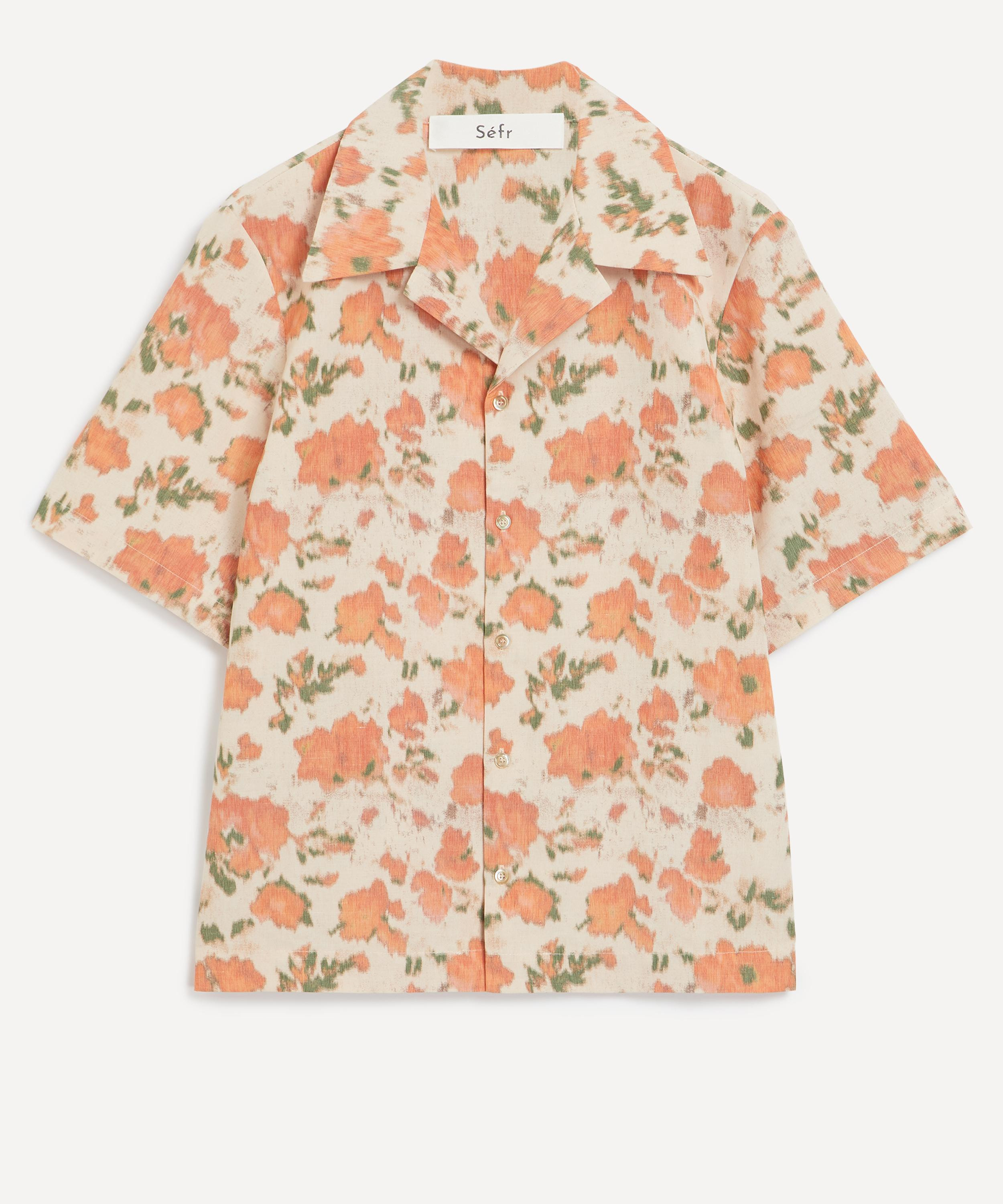 DETAILS Rayon-blend shirt Slightly boxy fit Short wide sleeves Camp collar Front button closure Mother-of-pearl buttons Orange Illusion print SIZE & FIT Model is 188cm/6'2"; Chest: 92cm; Waist: 80cm and wears a size M COMPOSITION & CARE 63% Rayon; 37% Polyester Hand wash, cold