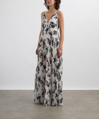 DETAILS Maxi dress Chiffon Floral print Flared hem skirt Fitted style, take one size up if between sizes Minimal stretch Zip closure at side Lined bodice and mini skirt lining Gathering detail under bust Made in Italy SIZE & FIT Model is 175cm/5'11"; Chest: 81cm; Waist: 65cm; Hip: 100cm and wears a size S COMPOSITION & CARE 100% Polyester Dry clean