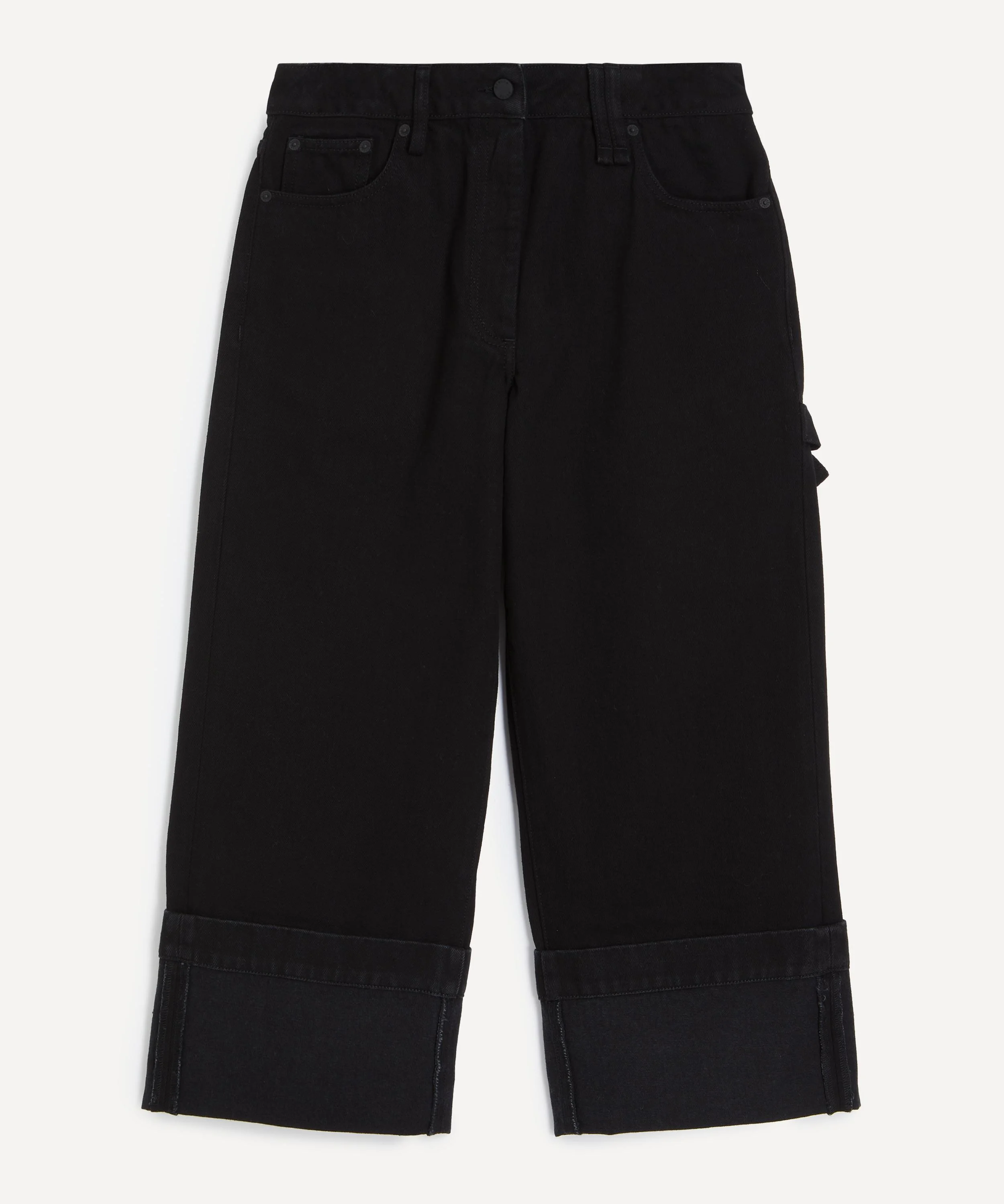Black Turned-Up Cropped Wide-Leg Jeans