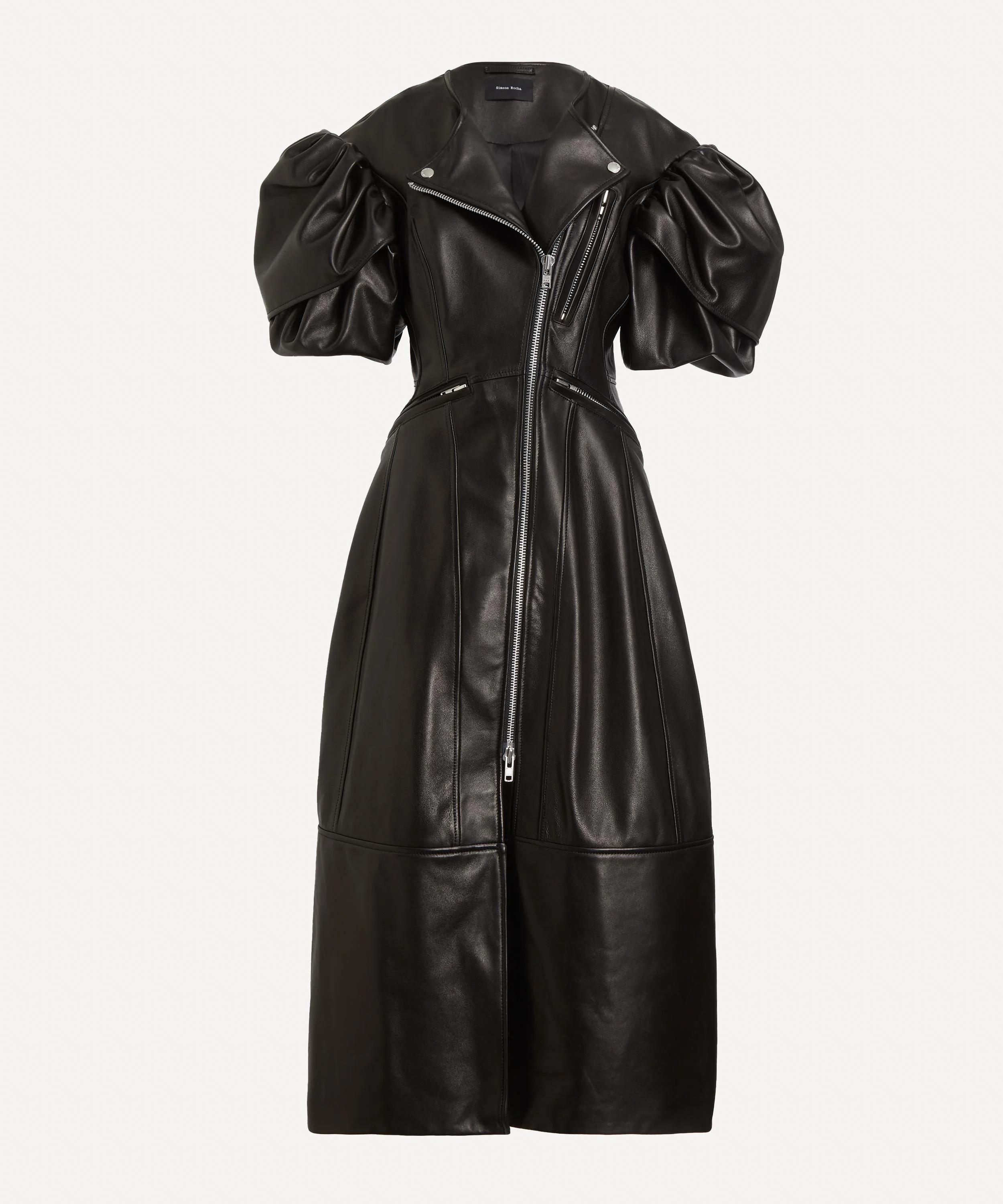 DETAILS Nappe leather biker dress Fit-and-flare silhouette Midi length Double-layered puff sleeves Round neckline Two-way zip closure Flap and zip pockets Silver hardware Lined SIZE & FIT Model is 175cm/5'9"; Chest: 77cm; Waist: 57cm; Hip: 87cm and wears a size 8 COMPOSITION & CARE 100% Lamb leather Lining: 100% Viscose Specialist leather dry clean