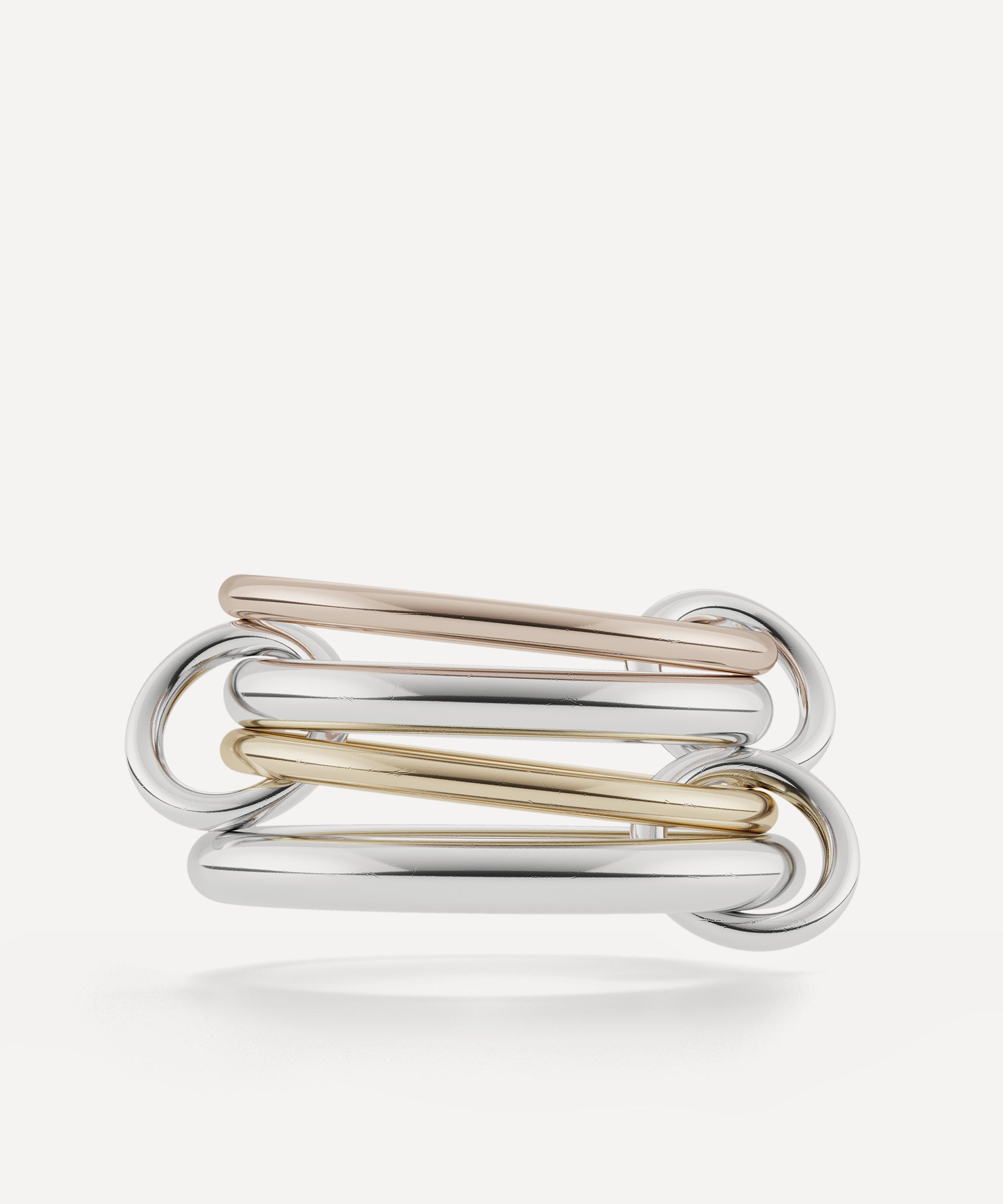 DETAILS Ring 18ct gold, rose gold linked bands Sterling silver linked bands Sterling silver connectors Handcrafted in Los Angeles COMPOSITION & SIZE 18ct Gold; 18ct Rose Gold; Sterling Silver