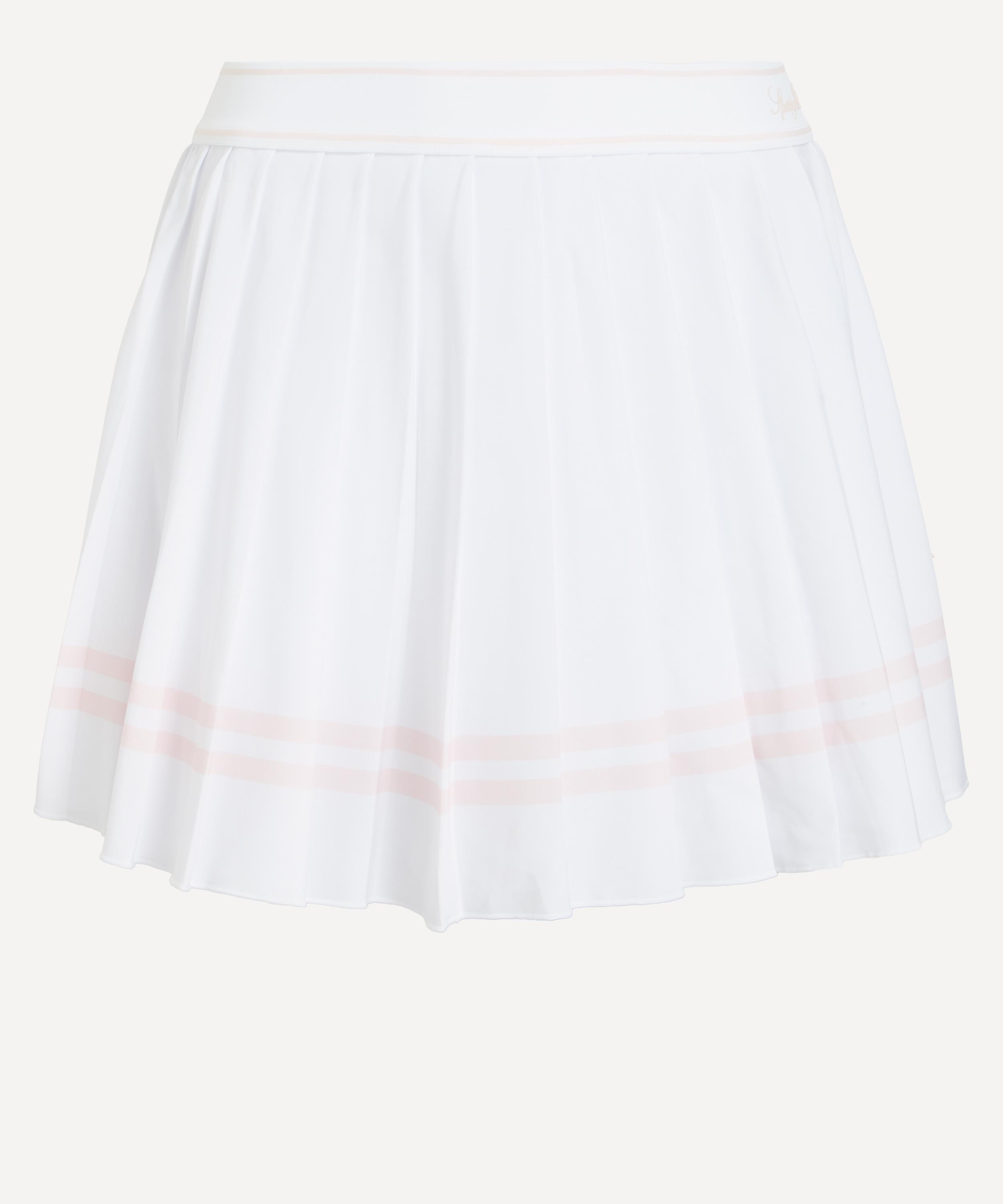 DETAILS Pleated tennis skirt Mini length Elasticated waistband with Vendome Script logo Pink striped detail on hem Interior shorts SIZE & FIT Model is 179cm/5'10.5"; Chest: 81cm; Waist: 64cm; Hip: 89cm and wears S COMPOSITION & CARE 94% Polyester; 6% Spandex Inner short: 88% Polyester; 12% Elastane Machine washable