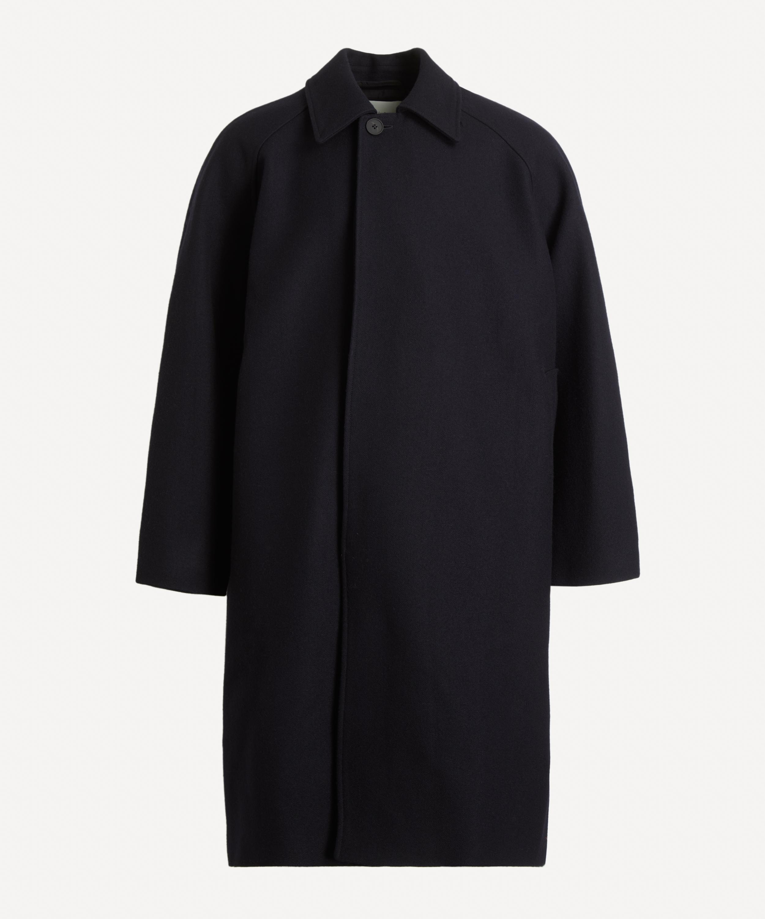 DETAILS Wool coat Longline Concealed button fastenings Spread collar Raglan sleeves SIZE & FIT Model is 186cm/6'1"; Chest 88.5cm; Waist: 71cm and wears a size M COMPOSITION & CARE 80% Wool: 20% Polyamide Dry clean