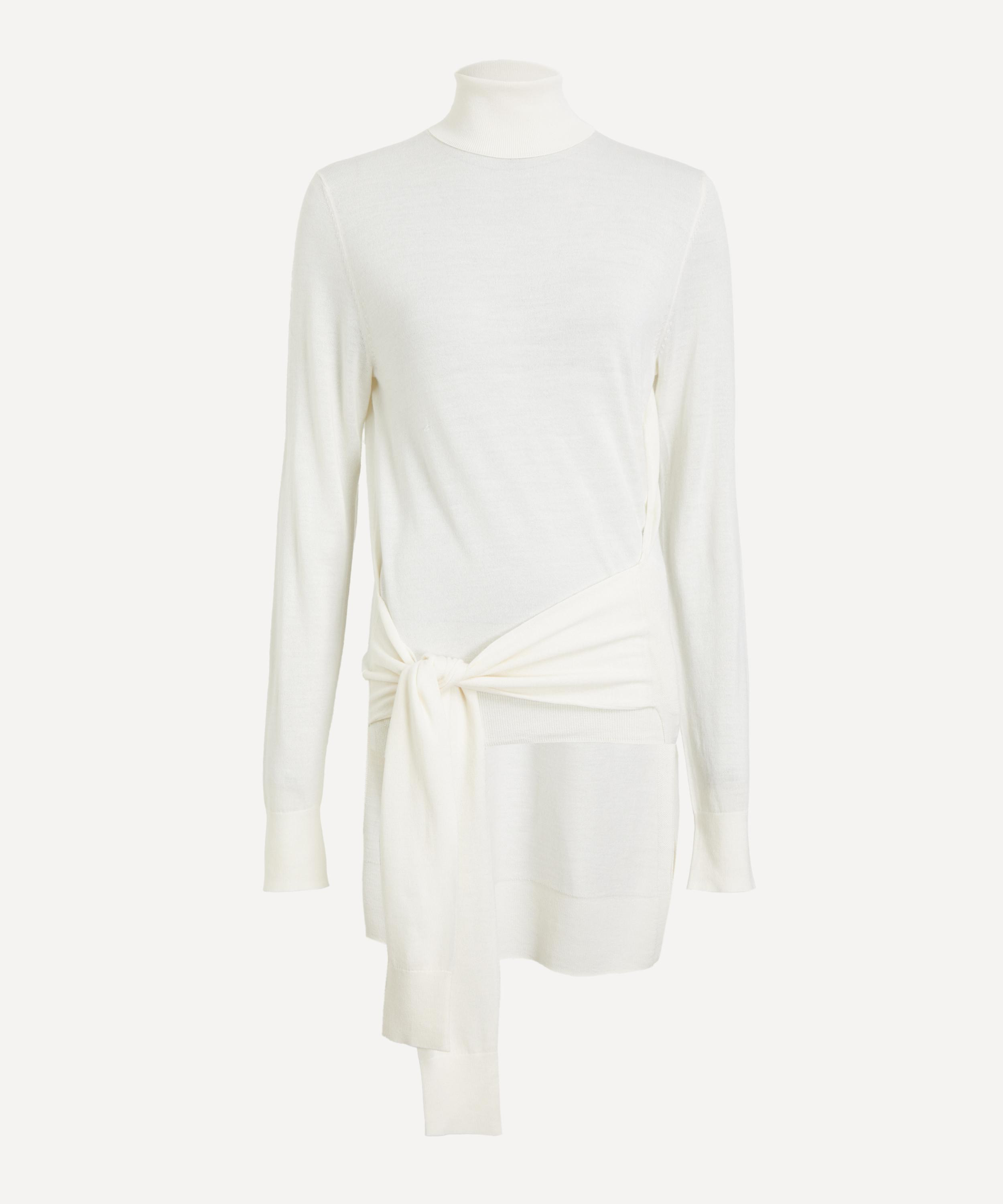 DETAILS Wool-silk blend jumper Slim fit Ribbed turtleneck Long sleeves Additional sleeves at the waist SIZE & FIT Model is 175cm/5'9"; Chest: 77cm; Waist: 57cm; Hip: 87cm and wears a size S COMPOSITION & CARE 75% Wool; 25% Silk Cool hand wash