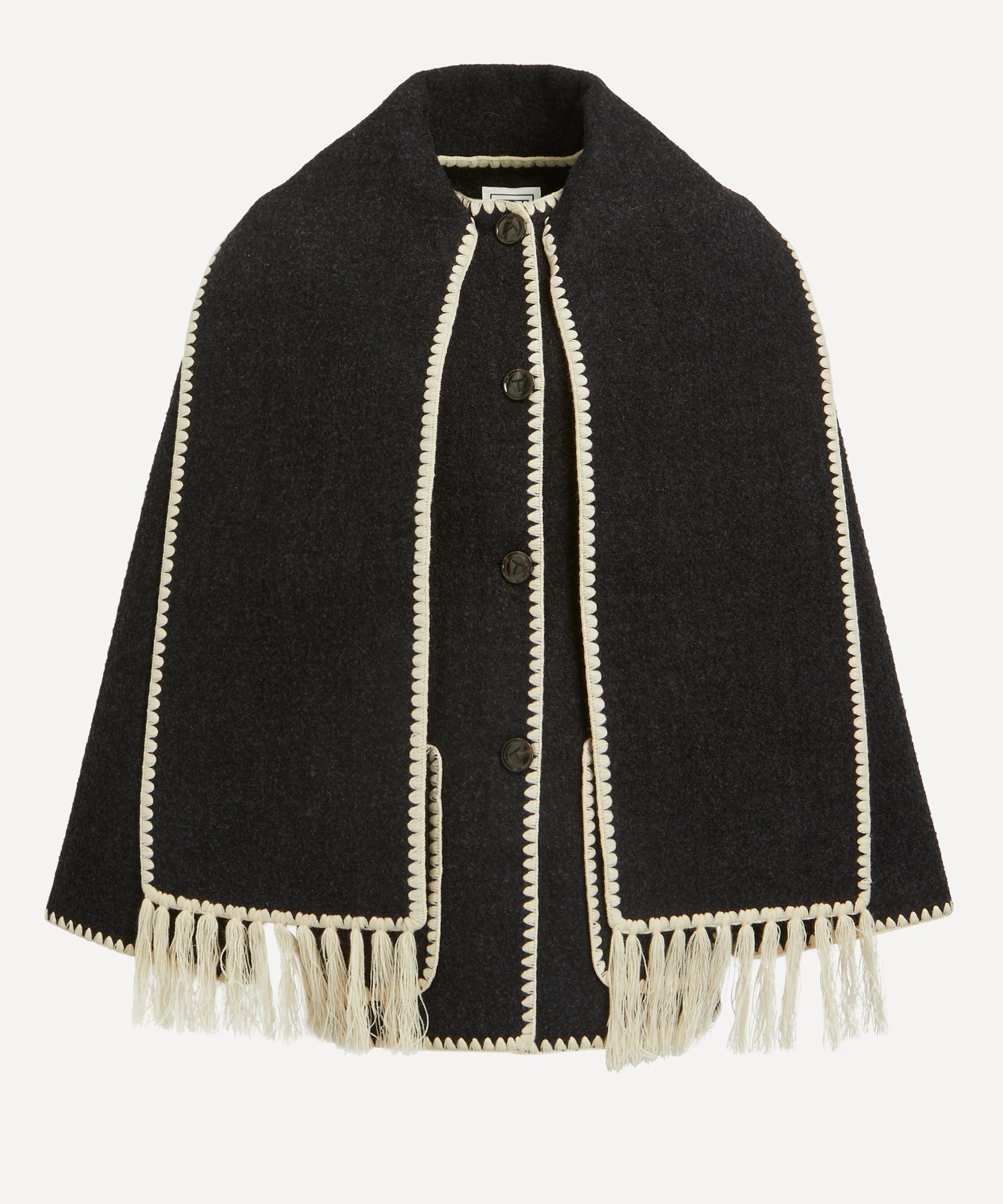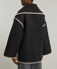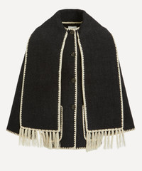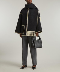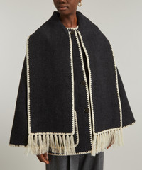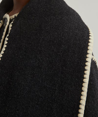 DETAILS Wool-blend jacket Oversized fit Dropped shoulders Wide sleeves Round neckline Button closure Two large patch pockets Detachable fringed scarf Cream embroidered edges SIZE & FIT Model is 180cm/5ft 11"; Chest: 79cm; Waist: 62cm; Hip: 89cm and wears a size 8 COMPOSITION & CARE 88% Wool; 12% Polyester Dry clean only