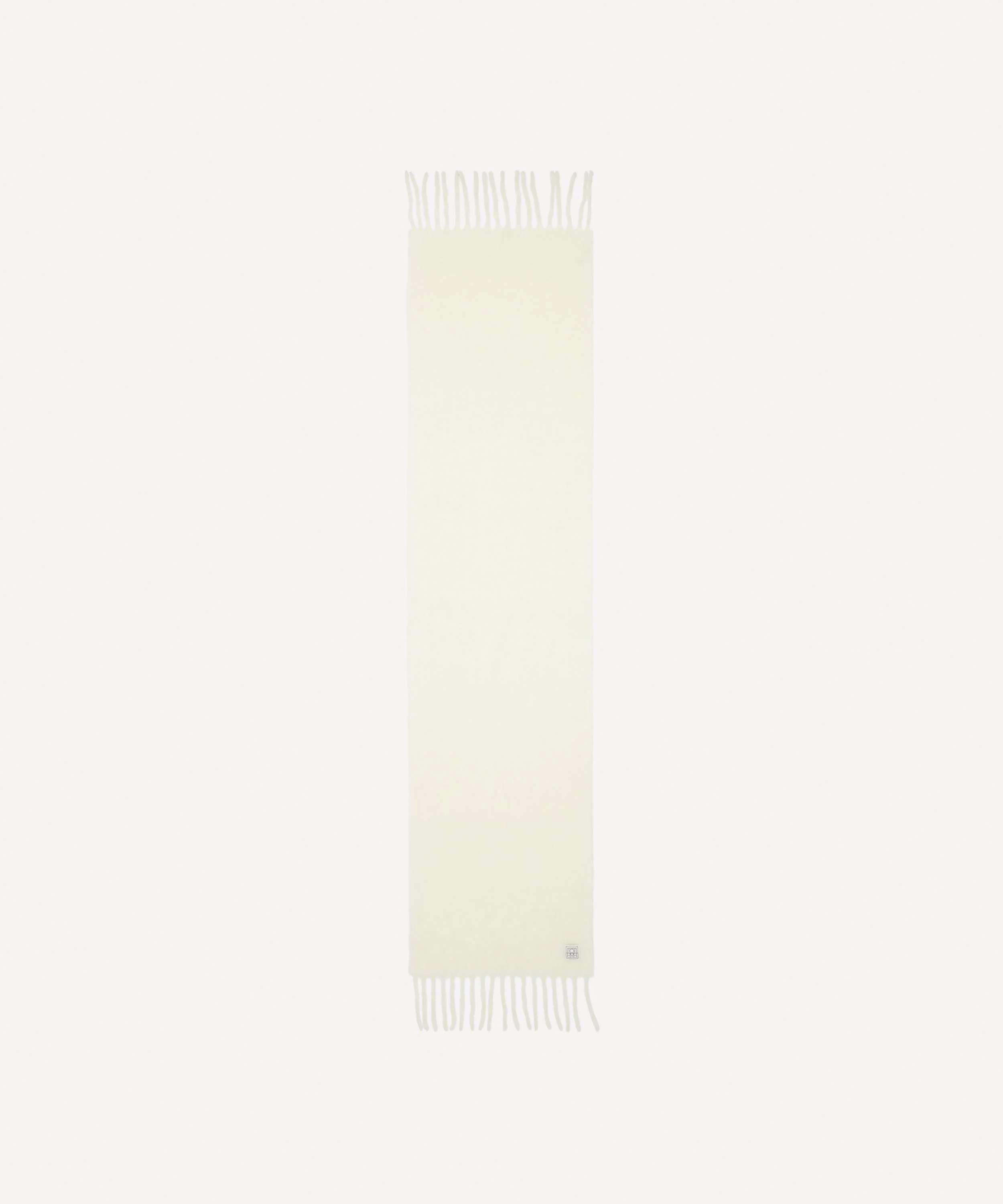 DETAILS Scarf Alpaca and wool blend Brushed texture Off-white colourway Fringed ends Care: Cool hand wash COMPOSITION & SIZE 60% Alpaca; 25% Wool; 15% Polyester L: 220cm, W: 48cm