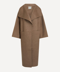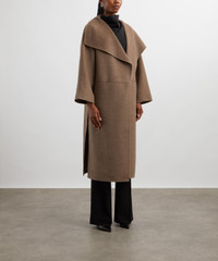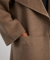 DETAILS Signature coat Wool-cashmere double fabric Oversized silhouette Melange effect Dropped shoulders Side splits Open front Long length Inseam pockets SIZE & FIT Model is 178.5cm/5'10" ; Chest: 77.5cm; Waist: 58.5cm; Hips: 86cm and wears a size S COMPOSITION & CARE 90% Wool; 10% Cashmere Dry clean