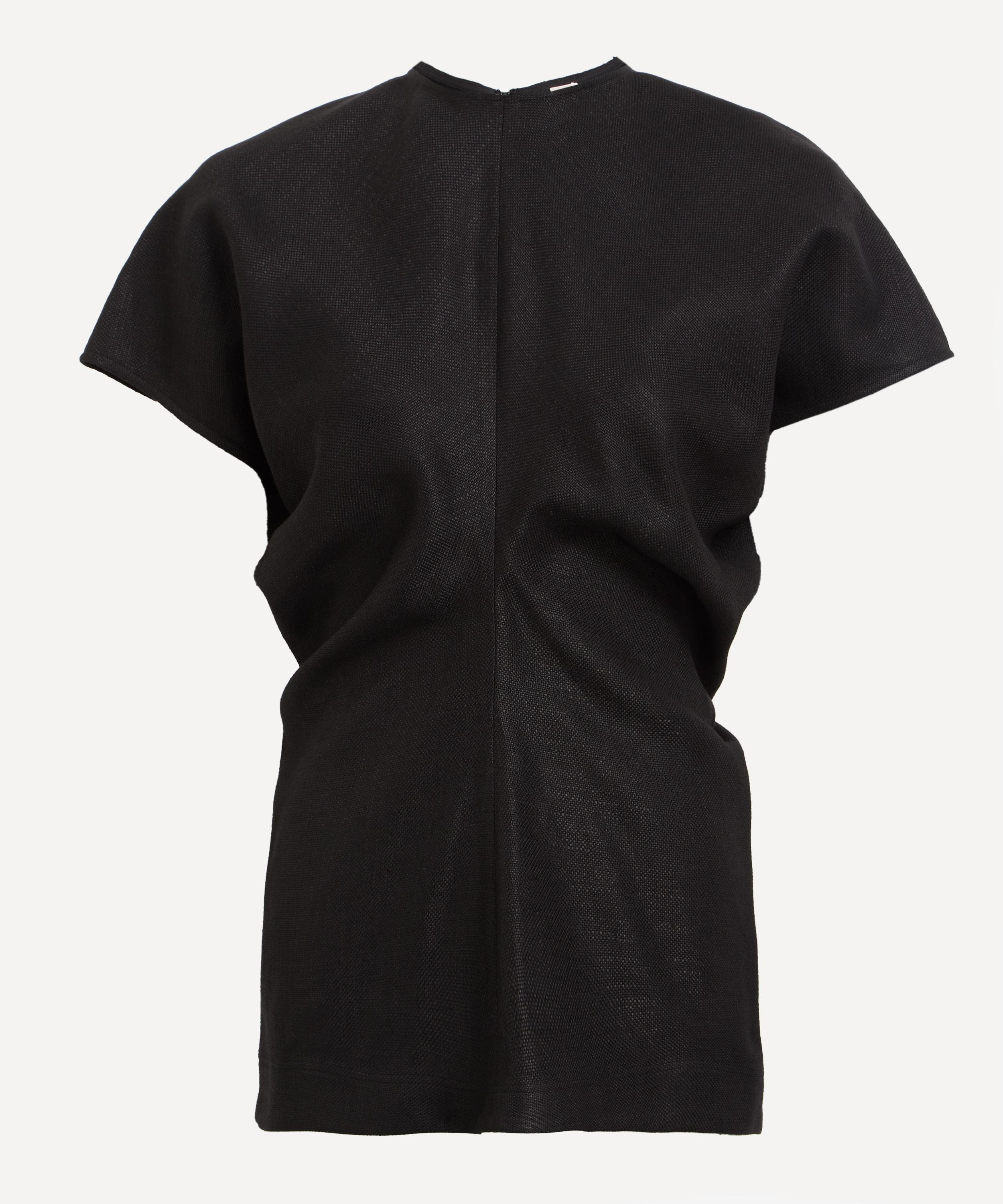 DETAILS Black top Basketweave construction High neckline Cap sleeves Slouched waist Concealed back zipper SIZE & FIT Model is 180cm/5'11"; Chest: 81cm; Waist: 61cm; Hip: 88cm and wears a size 8 COMPOSITION & CARE 68% Viscose; 24% Linen; 8% Cotton Dry clean