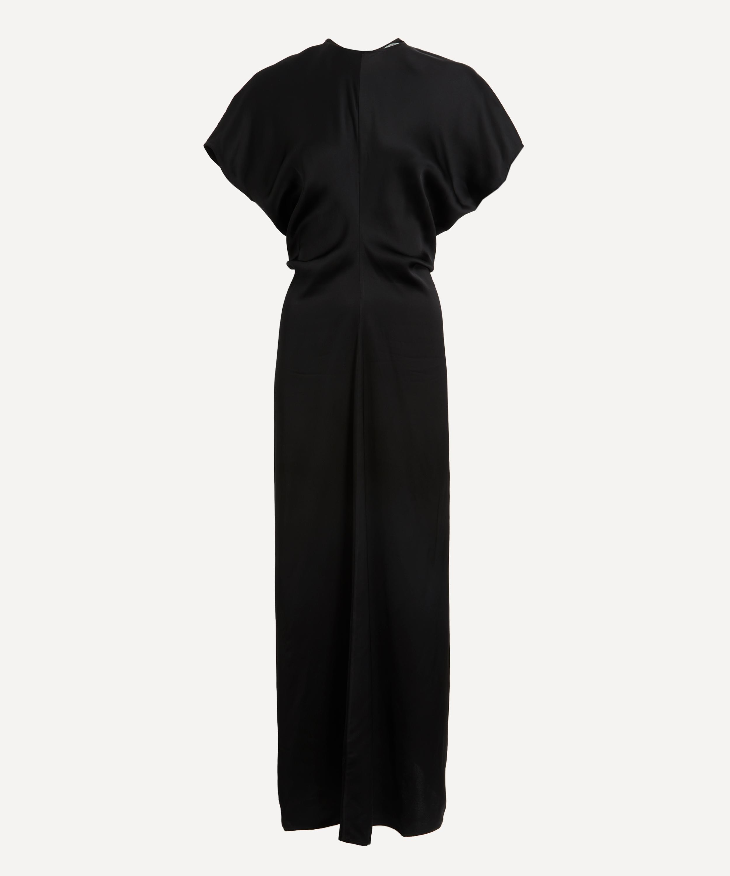 DETAILS Satin maxi-dress Slim fit Slouched waist Panelled construction Round neckline Short cap sleeves Concealed back zipper SIZE & FIT Model is 180cm/5'11"; Chest: 79cm; Waist: 24cm; Hips: 89cm and wears size 8 COMPOSITION & CARE 100% Viscose Dry clean
