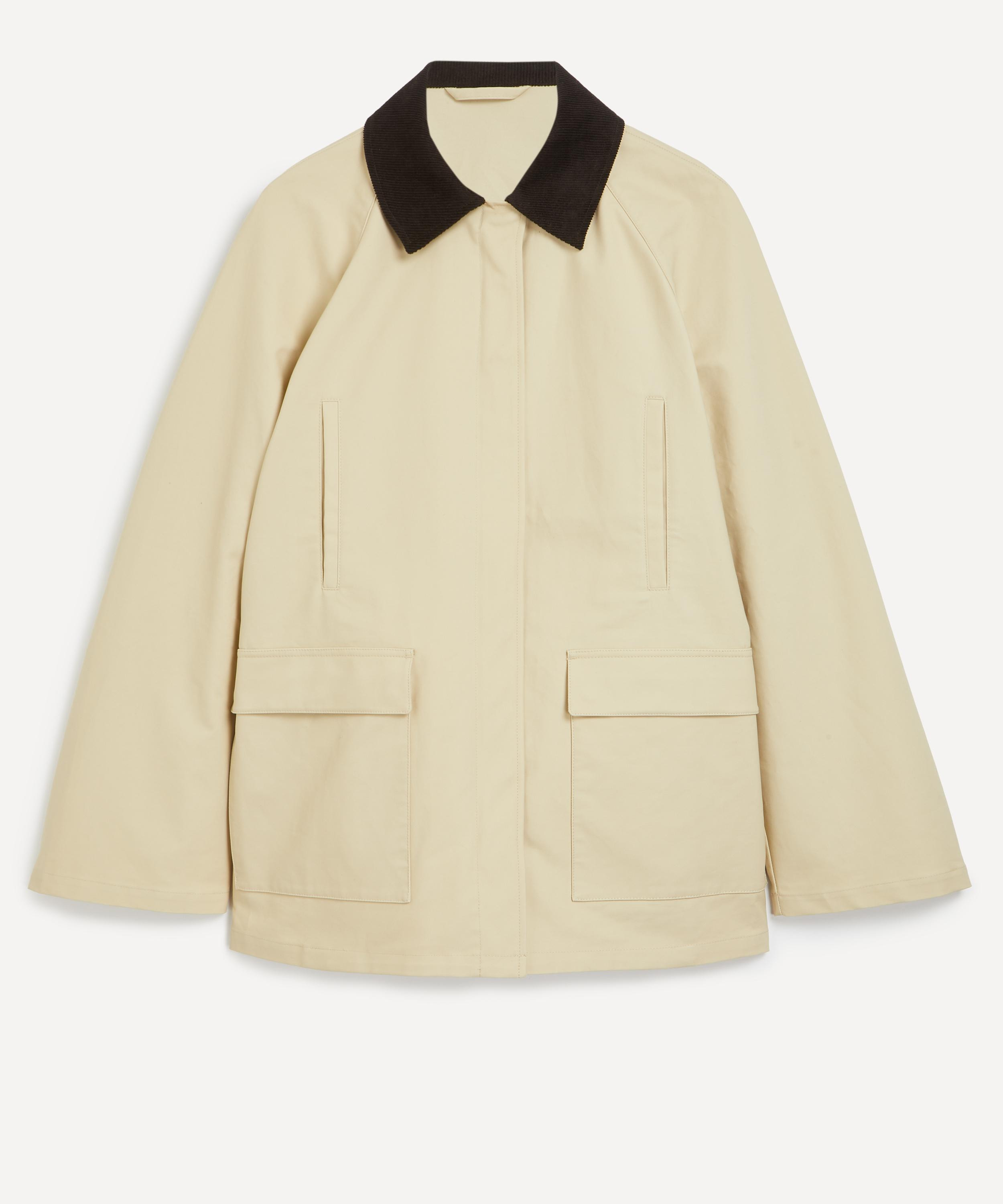 DETAILS Water-repellent cotton jacket Oversized fit Raglan sleeves Corduroy collar Concealed snap button and zipper front Welt and flap pockets SIZE & FIT Model is 180cm/5'11"; Chest: 81cm; Waist: 61cm; Hip: 88cm and wears a size 8 COMPOSITION & CARE 100% Cotton Dry clean