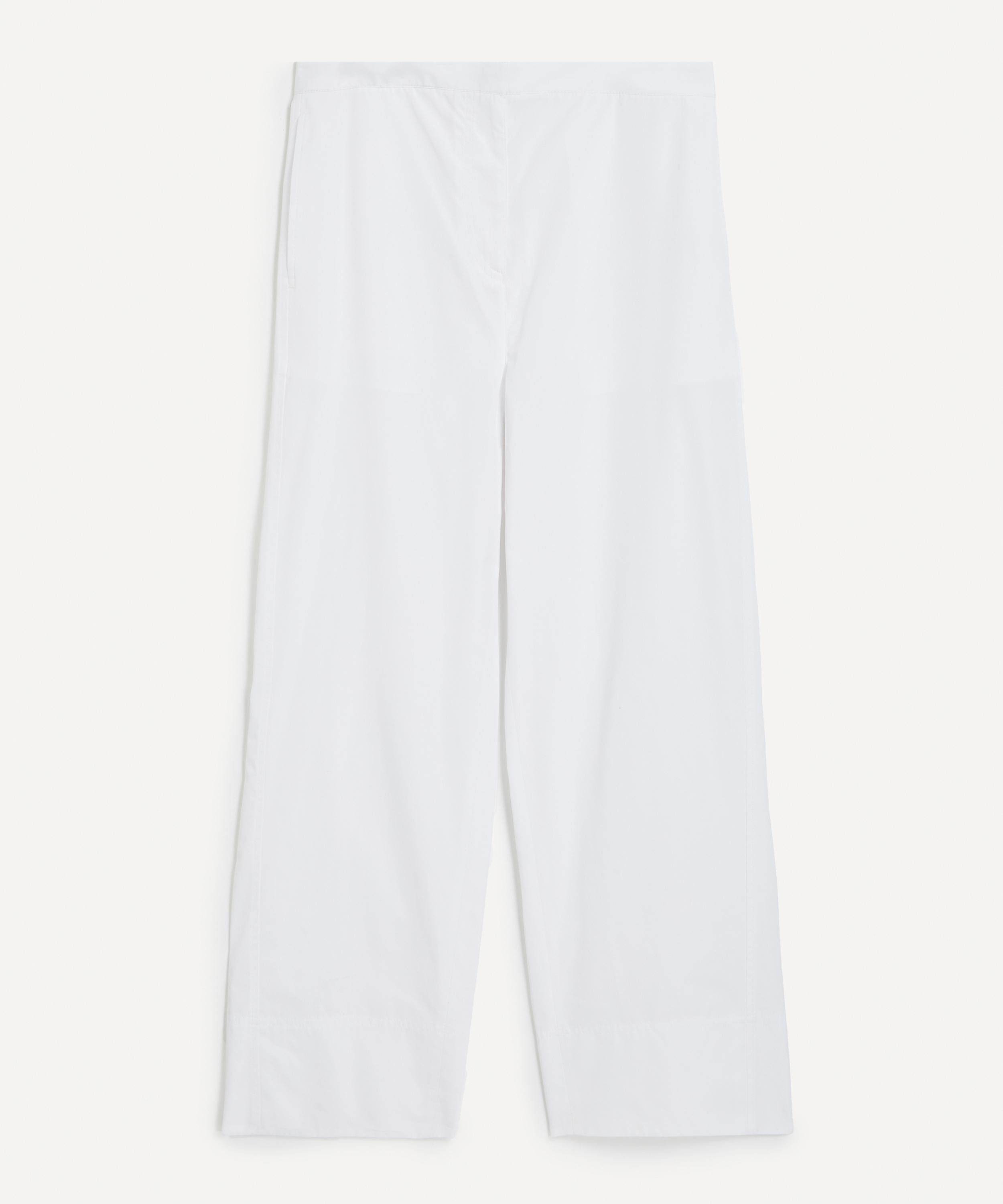 DETAILS Trousers Cotton poplin Relaxed fit Wide, straight-leg silhouette Zip fly closure Twisted leg seams Patch pockets at the back Two side pockets SIZE AND FIT Model is 175.5cm/5'9"; Chest 77cm; Waist: 57cm; Hip: 88cm and wears size 8 COMPOSITION & CARE 100% Cotton Hand wash cold