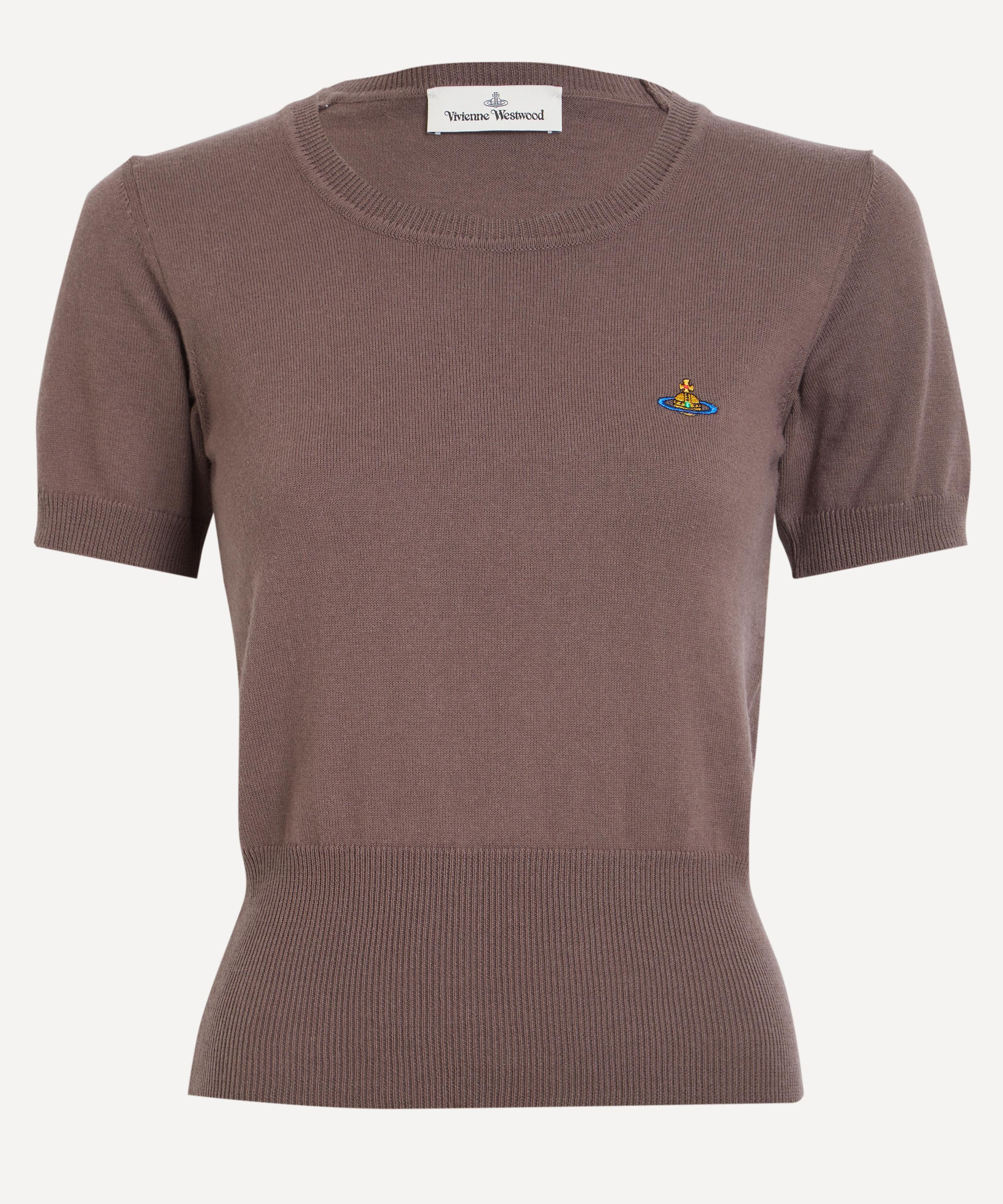 DETAILS Cotton-cashmere top Regular fit Short sleeves Round neckline Ribbed trims Straight hem Orb embroidery Made in Italy SIZE & FIT Model is 180cm/5'11"; Chest: 79cm; Waist: 62cm; Hip: 89cm and wears a size S COMPOSITION & CARE 85% Cotton; 15% Cashmere Dry clean