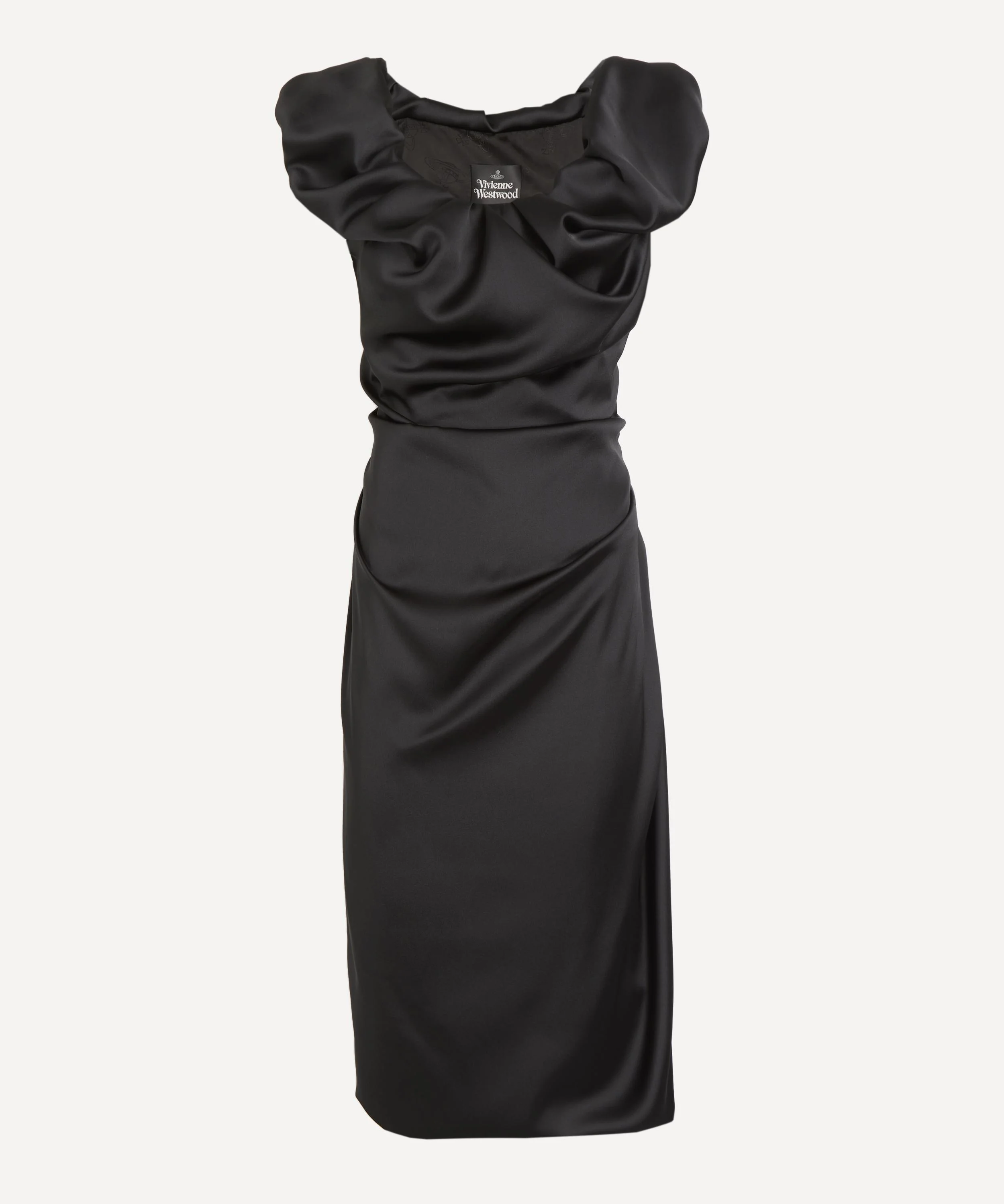 DETAILS Satin top Fits true to size Slim fit Sleeveless Ruched asymmetric neckline Gathered detailing at sides Fitted waist Midi knee-length SIZE & FIT Model is 178cm/5'10"; Chest: 77cm; Waist: 65cm; Hip: 92cm and wears a size 40 COMPOSITION & CARE 100% Polyester Dry clean