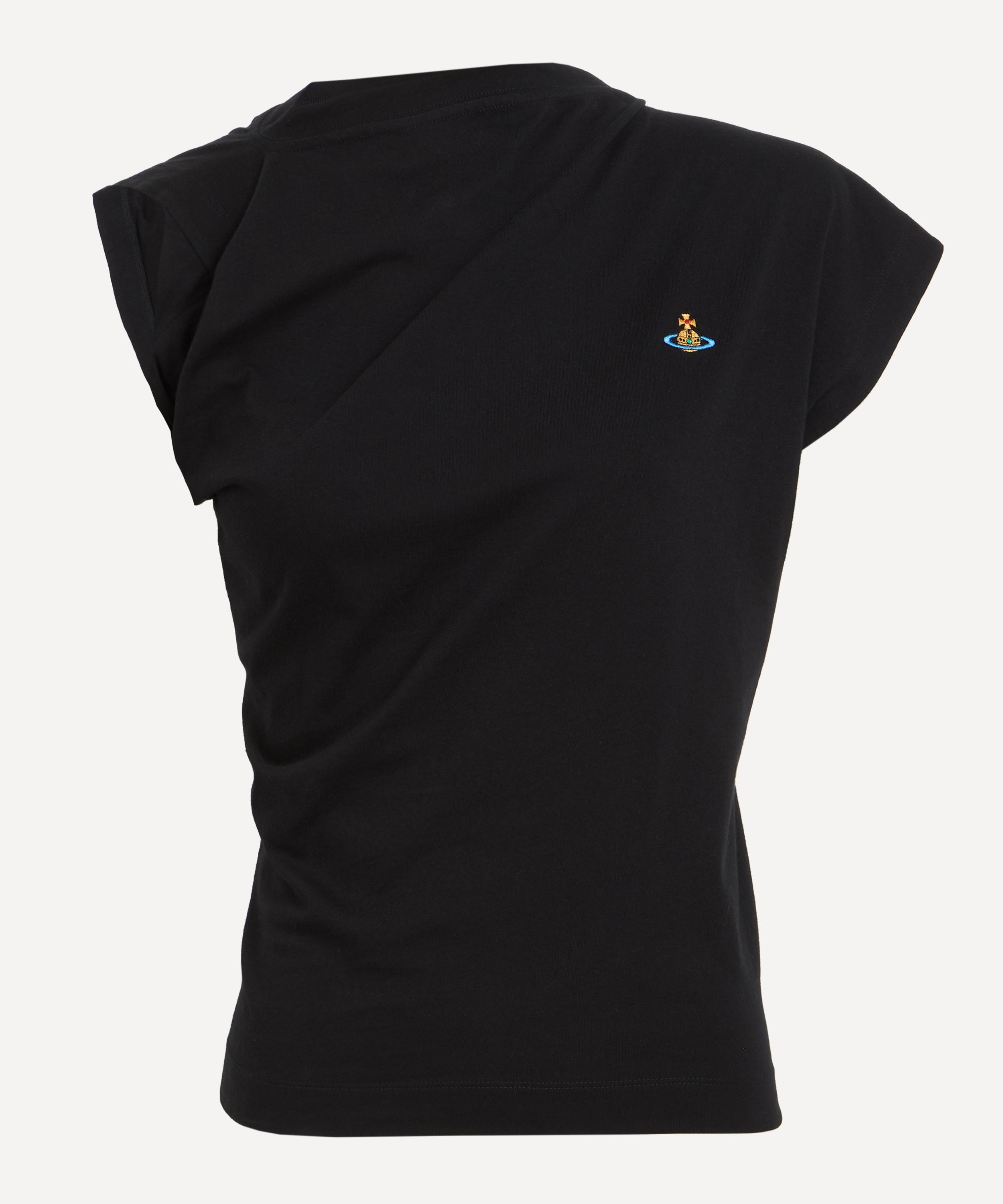 DETAILS Cotton top Draped design Asymmetric sleeves Gathered side detailing Darting at the back Tonal stitching Embroidered orb motif Model is 180cm/5'11"; Chest: 81cm; Waist: 61cm; Hip: 88cm and wears a size S COMPOSITION & CARE 100% Cotton Delicate wash