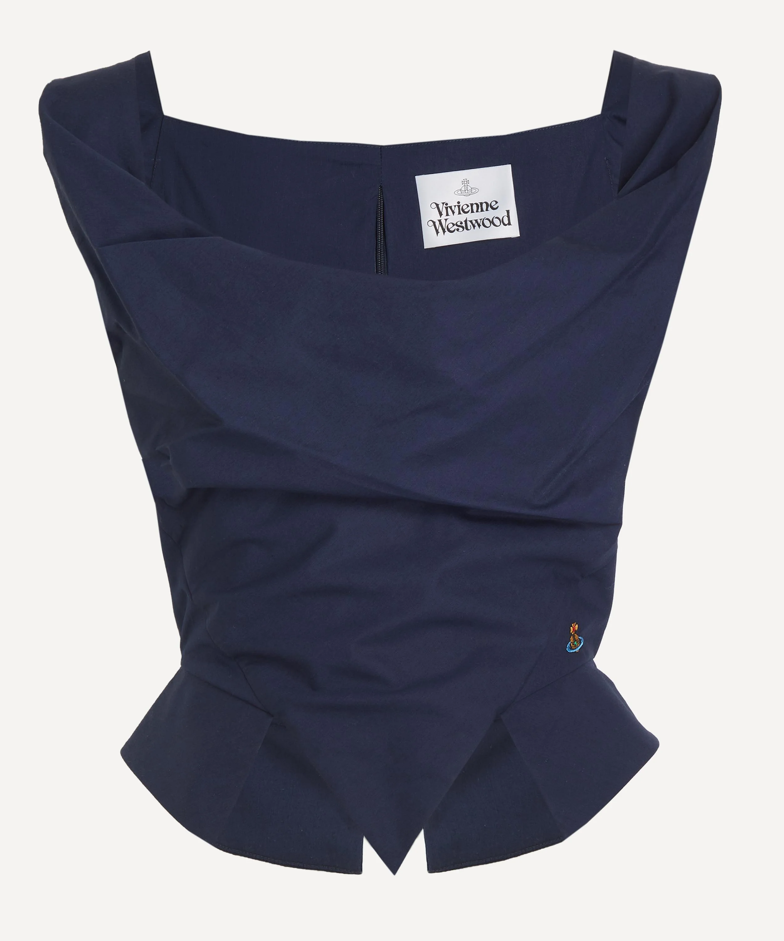 DETAILS Cotton top Fits true to size Sleeveless Draped cowl neckline Wide shoulder straps Sculpted, fitted bodice Angular pointed hemline Centre-back zip closure Multi-coloured embroidered orb SIZE & FIT Model is 178cm/5'10"; Chest: 77cm; Waist: 65cm; Hip: 92cm and wears a size 40 COMPOSITION & CARE 100% Cotton Dry clean