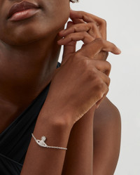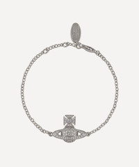 DETAILS Bracelet Silver-tone brass Orb plaque pendant Cubic zirconia accents Link chain Lobster clasp fastening Handmade COMPOSITION & SIZE Brass; Cubic Zirconia Chain L: 17cm