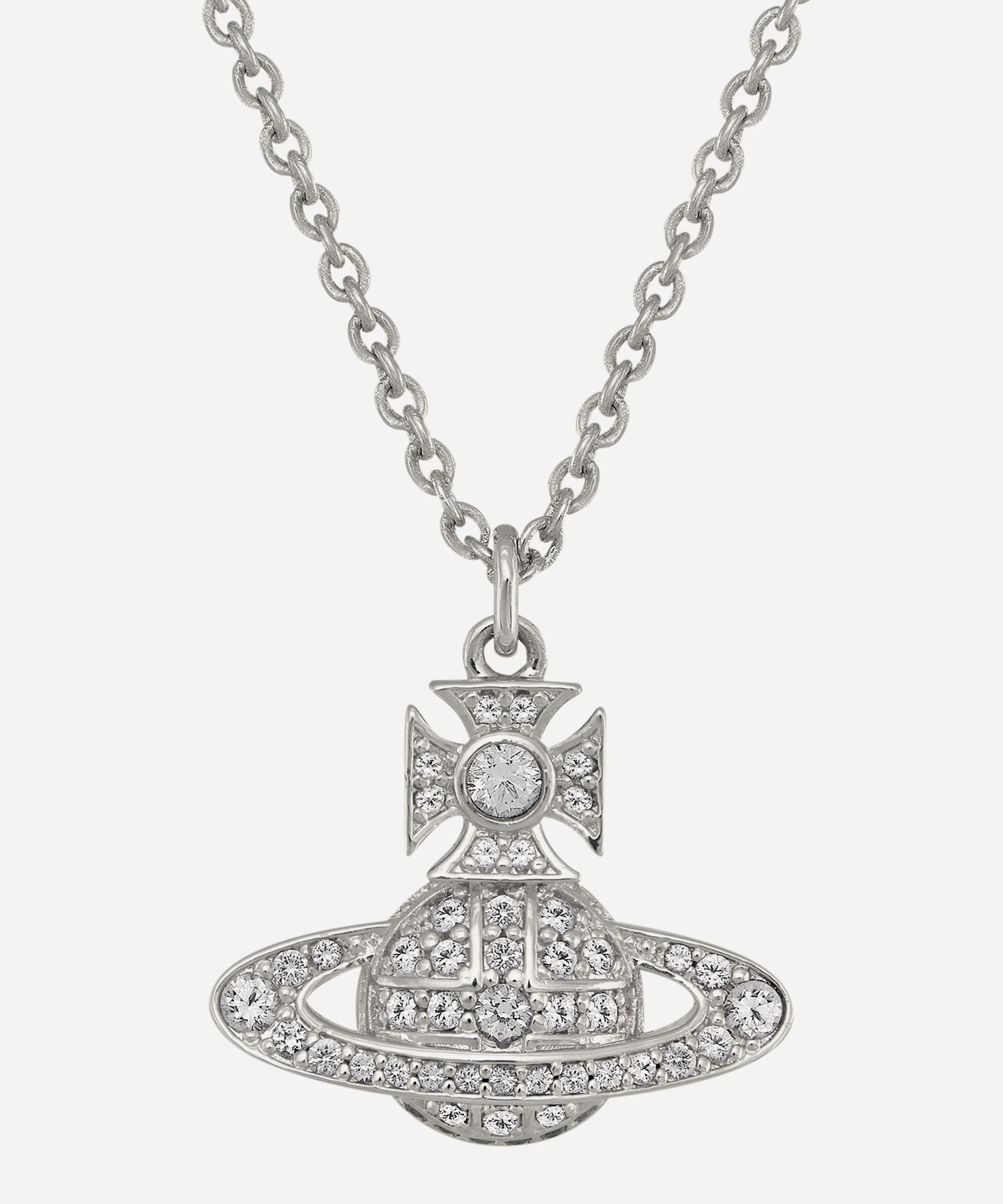 DETAILS Pendant necklace Silver-tone brass Two-dimensional orb plaque pendant Crystal embellishments Link chain Post and butterfly fastening Handmade COMPOSITION & SIZE Brass; Semi-Precious Crystal Pendant H: 2cm, W: 2.5cm Chain L: 40cm-45cm