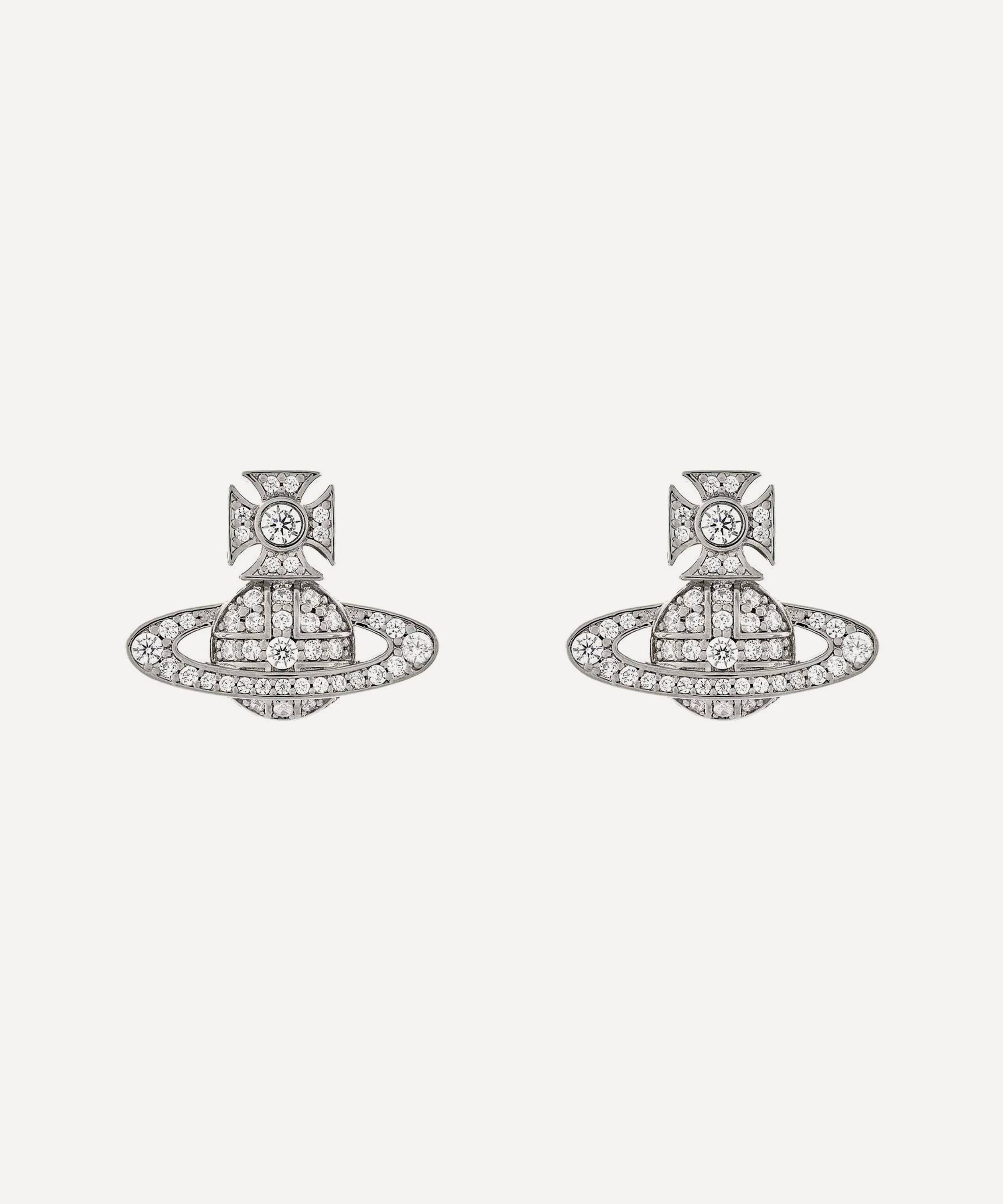 DETAILS Stud earrings Silver-tone brass Two-dimensional orb plaque motif Crystal embellishments Post and butterfly fastening Handmade COMPOSITION & SIZE Brass; Semi-Precious Crystal H: 1.7cm, W: 2.7cm