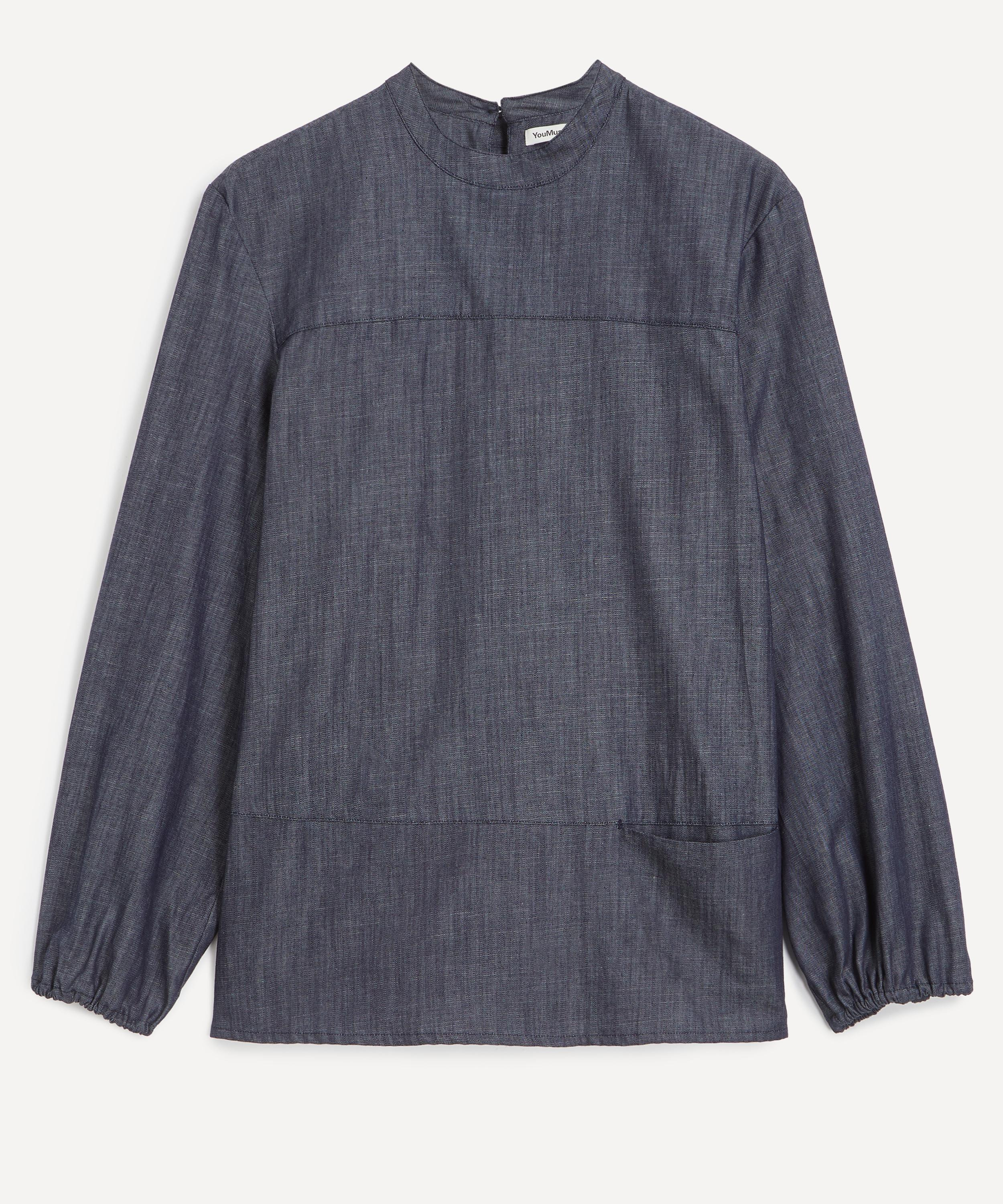 DETAILS Cotton chambray top Relaxed fit Long balloon sleeves Adjustable drawcords on cuffs Stand collar with back fastening Front seam pockets SIZE & FIT Model is 178cm/5'10"; Chest: 79cm; Waist: 62cm; Hip: 88cm and wears a size S COMPOSITION & CARE 100% Cotton Machine wash cold