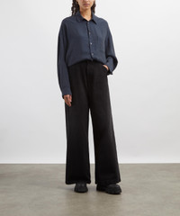 DETAILS Navy viscose shirt Oversized fit Long-sleeves Single-button cuffs Point collar Mother-of-pearl button fastening Chest pocket SIZE & FIT Model is 175cm/5’9" Chest: 82cm; Waist: 59.5cm; Hip: 86cm and wears a size S COMPOSITION & CARE 76% Viscose; 24% Polyamide Machine washable