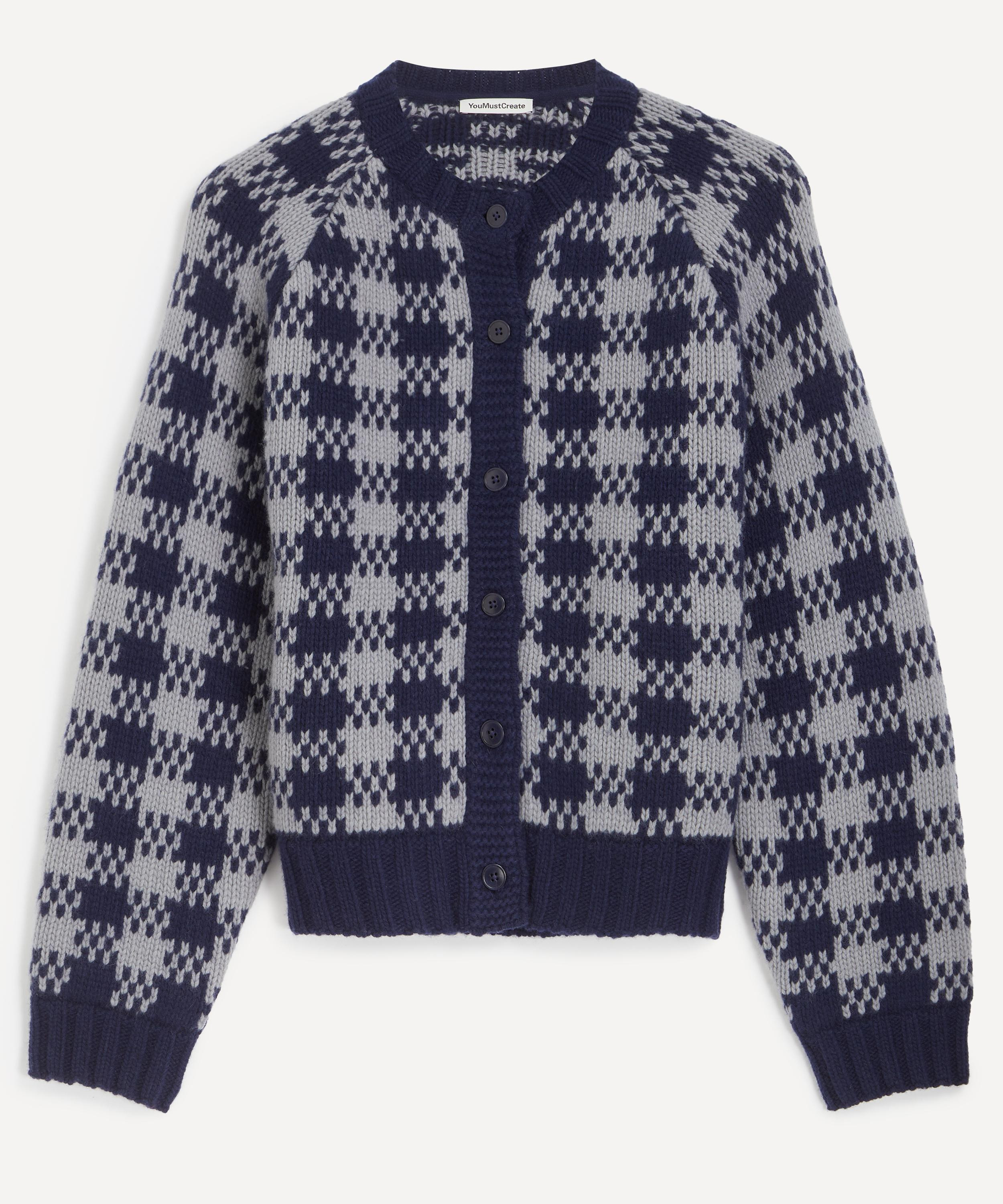 DETAILS Wool-blend cardigan Checkered jacquard pattern Regular fit Raglan sleeves Round neckline Corozo button fastening Rib-knit collar, cuffs, and hem SIZE & FIT Model is 178cm/5'10"; Chest: 79cm; Waist: 62cm; Hip: 88cm and wears a size S COMPOSITION & CARE 80% Wool; 20% Nylon Cold hand wash