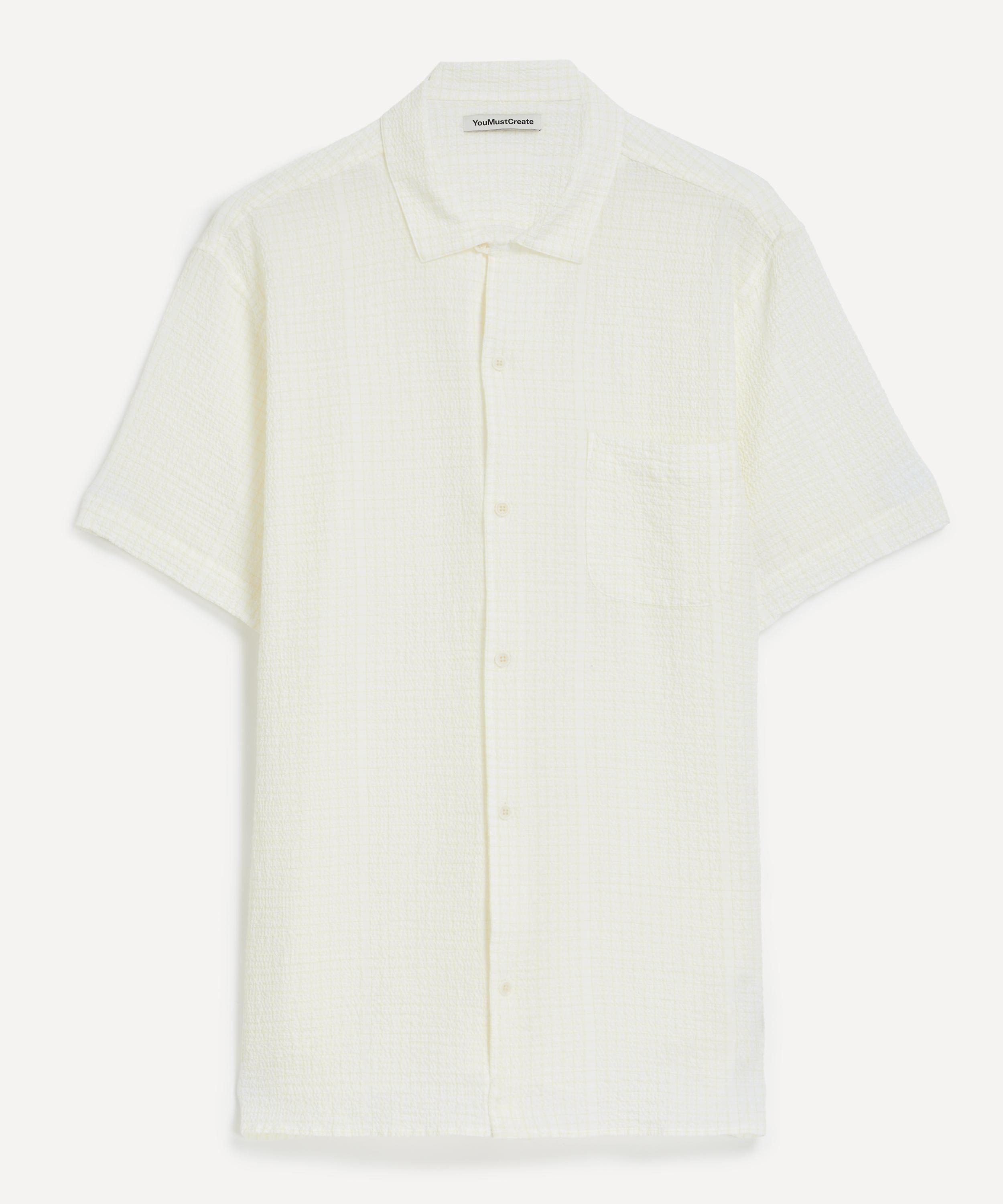 DETAILS Cotton seersucker shirt Relaxed fit Short sleeves Cuban collar Corozo button fastening Chest patch pocket SIZE & FIT Model is 186cm/6'1"; Chest: 91.5cm; Waist: 74cm and wears M COMPOSITION & CARE 98% Cotton; 2% Elastane Machine wash cold 30°C