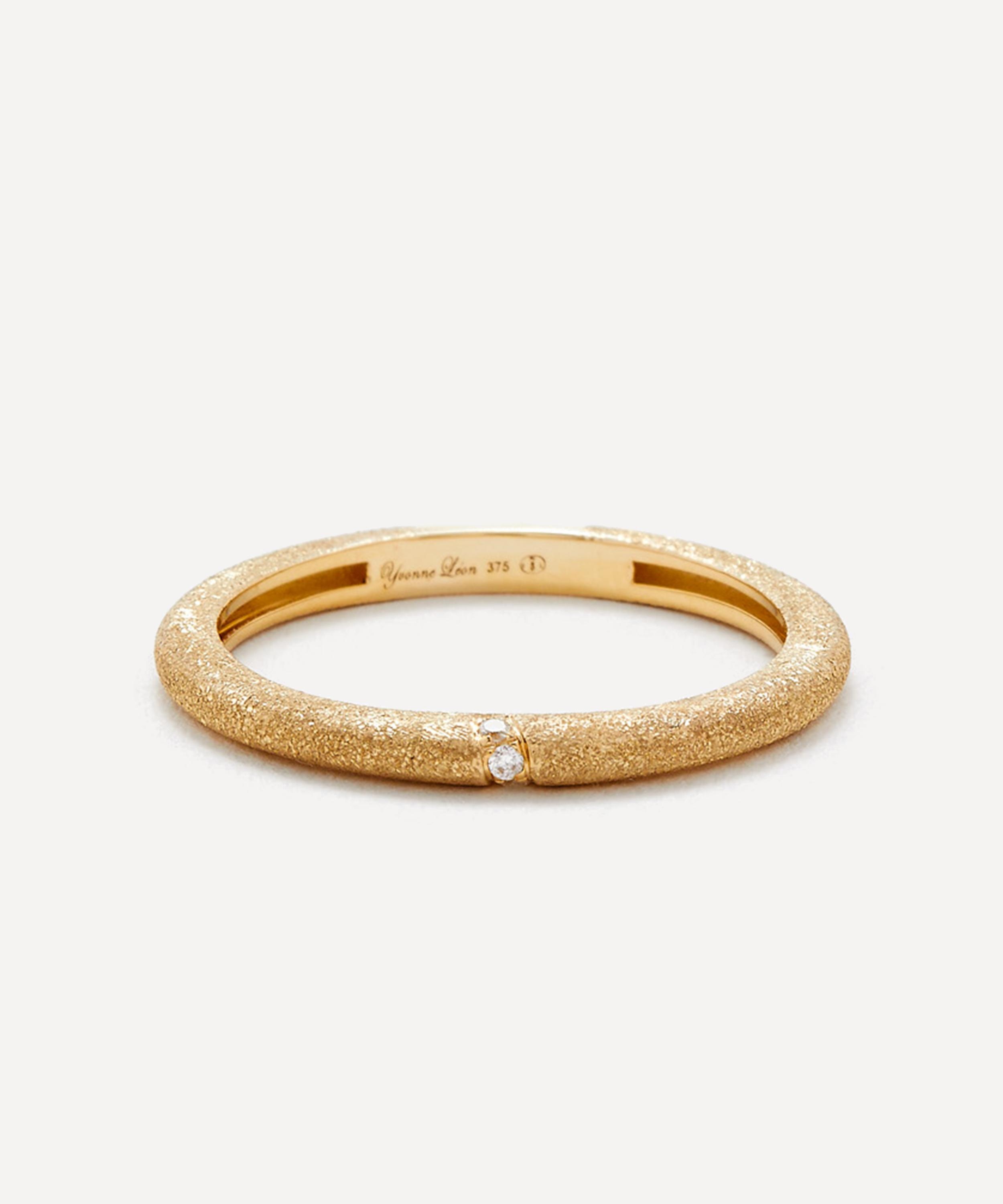 DETAILS Stacking ring 9ct gold Three tiny diamonds Textured band COMPOSITION & SIZE 9ct Gold; Estimated 0.01ct Grey Diamond