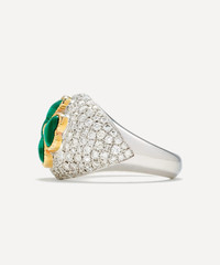 DETAILS Dome ring 9ct white gold Malachite clover design Grey diamonds Twisted detailing Slim, polished band COMPOSITION & SIZE 9ct White Gold; Estimated 1.80ct Malachite; Estimated 1ct Grey Diamond