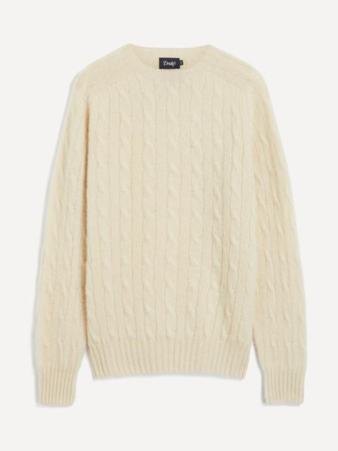 Ecru Brushed Shetland Cable Knit Crew Neck Jumper